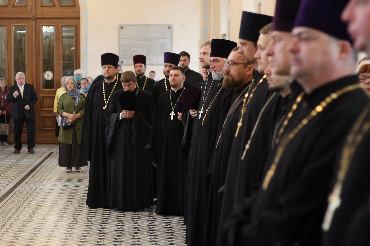 В актовом зале Покровского собора состоялась встреча с духовенством епархии. Владыка Вениамин представил свою книгу о жизни и подвиге священномученика Иоанна Восторгова и ответил на вопросы священнослужителей.