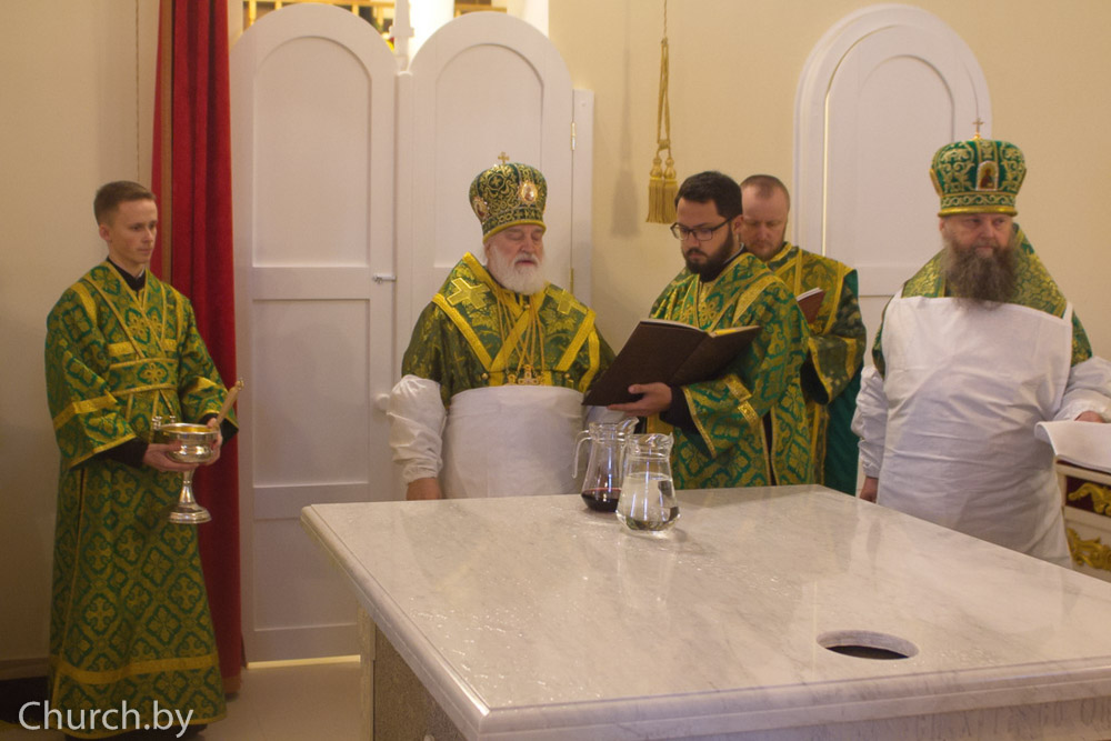 Архипастырям сослужили: управляющий делами Минской Экзархии архимандрит Сергий (Брич), наместник обители игумен Евсевий (Тюхлов), секретарь Новогрудской епархии протоиерей Анатолий Герасимук и духовенство Новогрудской епархии.