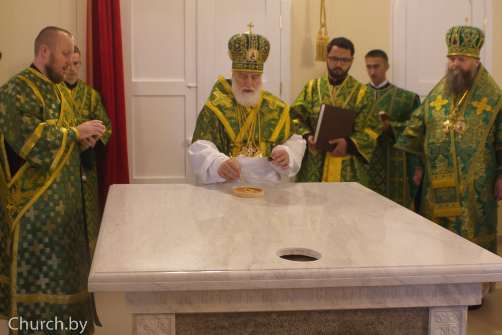 Перед началом Божественной литургии Патриарший Экзарх совершил чин великого освящения храма в честь преподобного Елисея Лавришевского.
