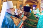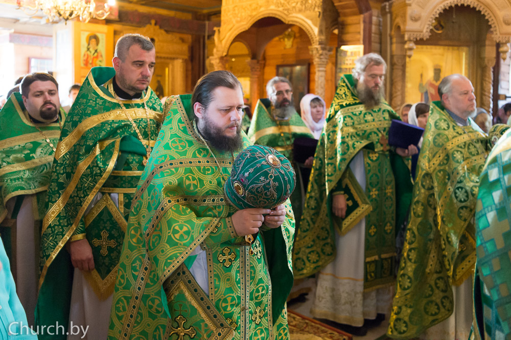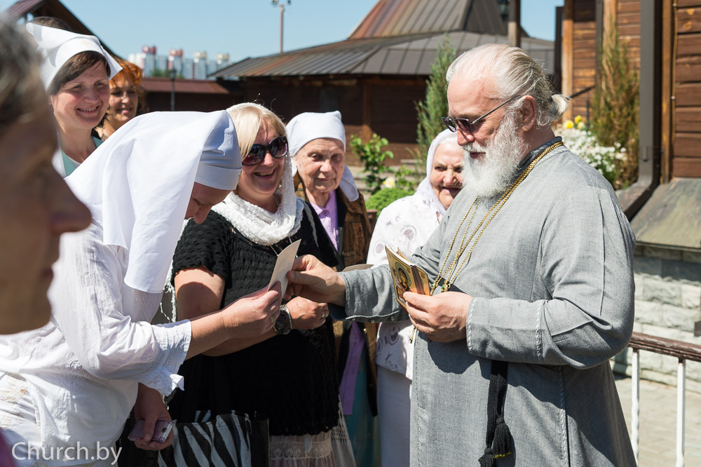 Его Высокопреосвященству сослужили: управляющий делами Минской Экзархии архимандрит Сергий (Брич); ключарь кафедрального собора Рождества Пресвятой Богородицы г. Солигорска, благочинный Солигорского городского округа протоиерей Николай Розов; настоятель прихода храма преподобного Серафима Саровского города Минска, благочинный 7-го Минского городского округа протоиерей Александр Ширитон; настоятель прихода храма Преображения Господня города Минска, руководитель Отдела религиозного образования и катехизации Минской епархии протоиерей Святослав Левицкий; секретарь Минской епархии протоиерей Андрей Волков; настоятель прихода храма иконы Божией Матери «Всецарица» в городе Минске, председатель Синодального отдела по церковной благотворительности и социальному служению Белорусской Православной Церкви протоиерей Кирилл Шолков; настоятель прихода храма Введения во храм Пресвятой Богородицы города Минска, председатель Синодального отдела по тюремному служению Белорусской Православной Церкви иерей Георгий Лопухов; настоятель прихода храма преподобного Сергия Радонежского города Минска иерей Дмитрий Шульга и клирики Серафимовского прихода.