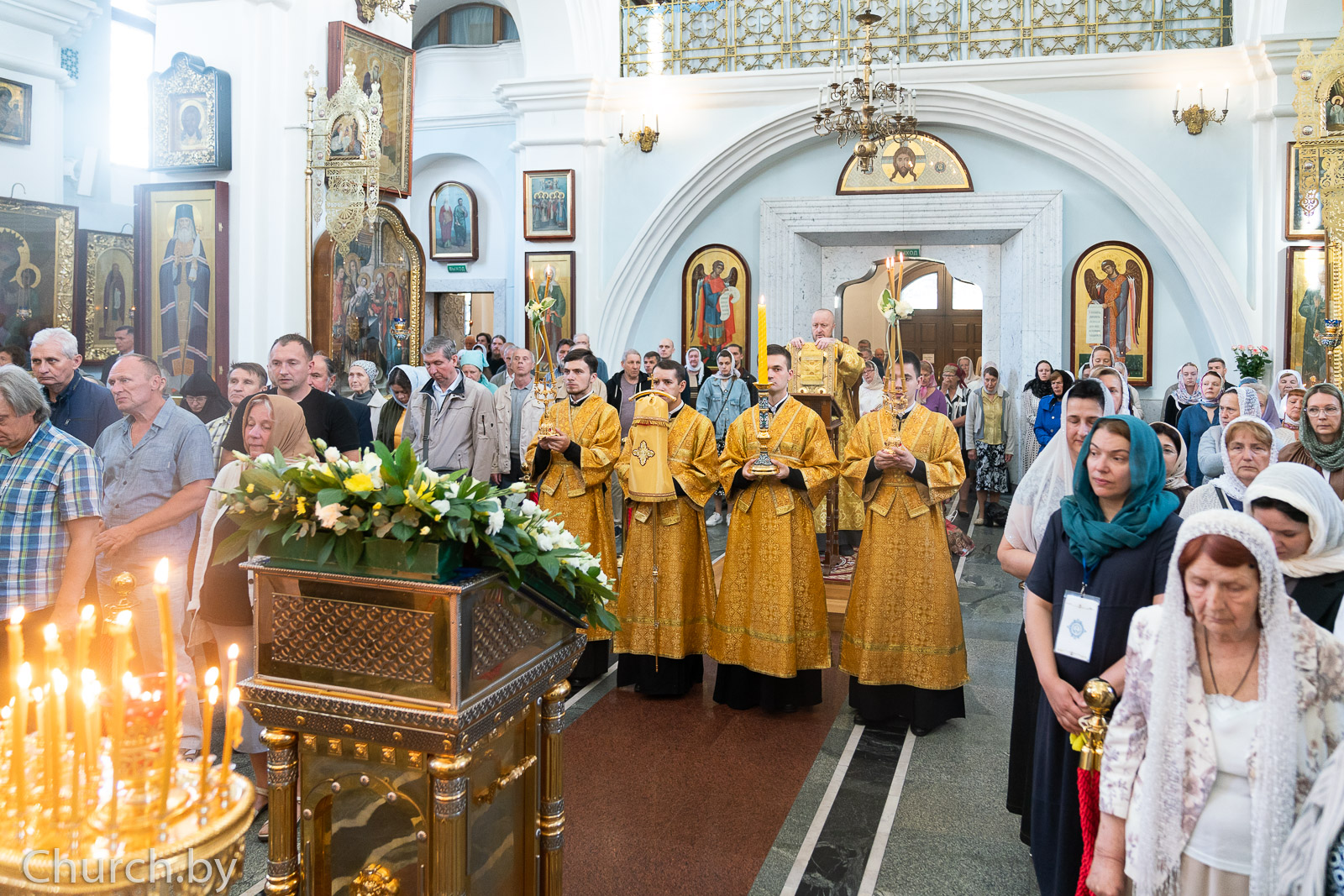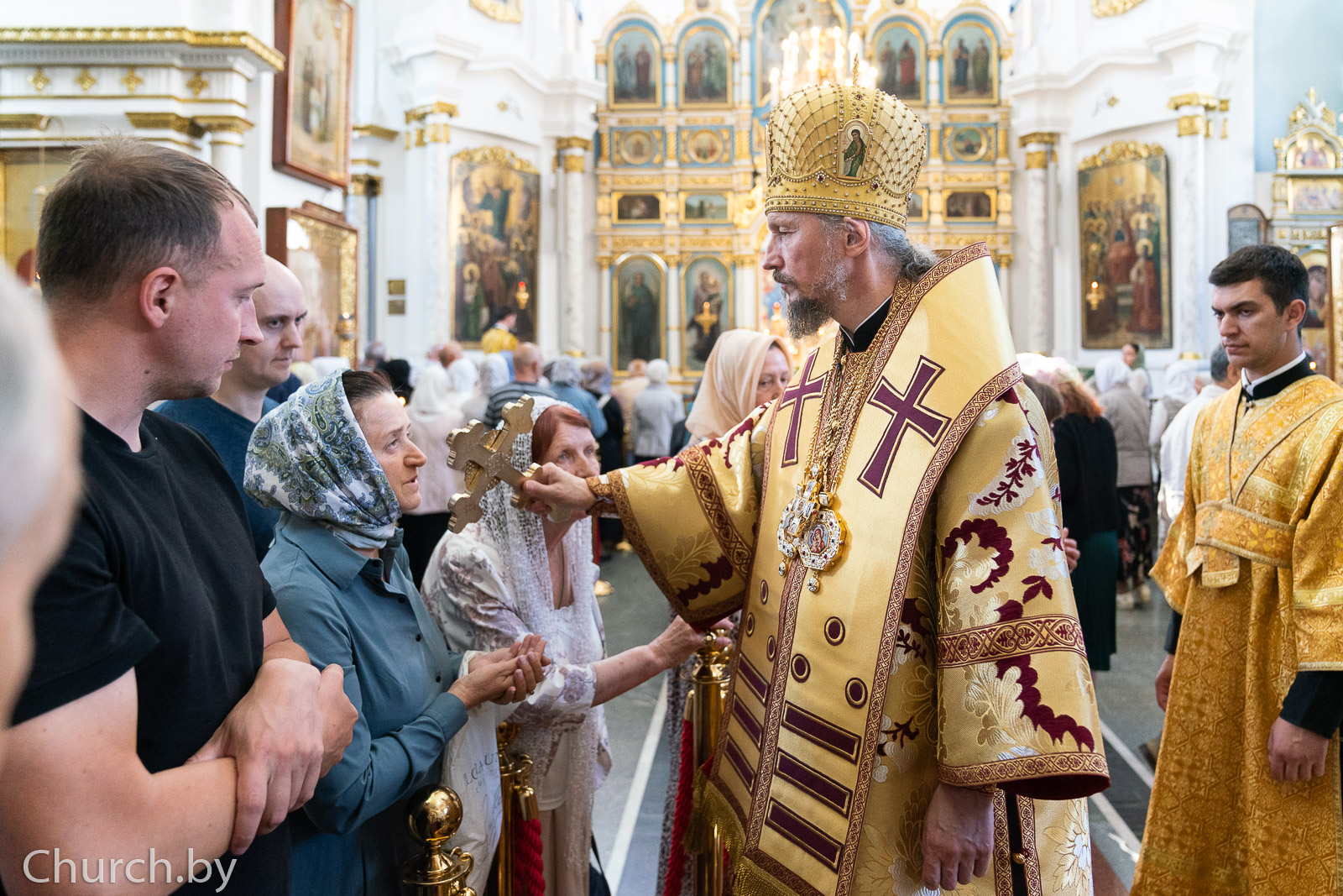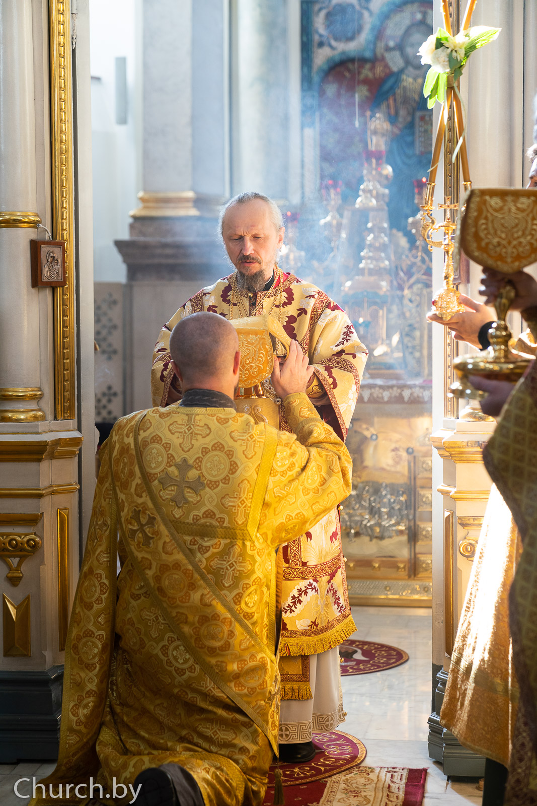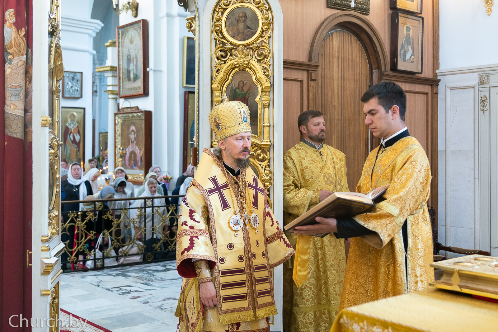Его Высокопреосвященству сослужили: секретарь Минской епархии протоиерей Андрей Волков; председатель наградной комиссии Белорусского Экзархата, председатель приходского совета Свято-Духова кафедрального собора иерей Дионисий Ковалёв и клирики кафедрального собора.