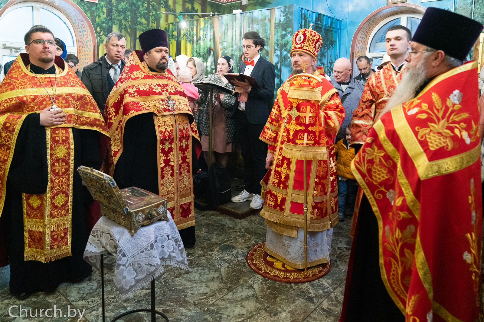 Его Высокопреосвященству сослужили: секретарь Минской епархии протоиерей Андрей Волков; председатель Синодального отдела по тюремному служению Белорусской Православной Церкви, настоятель прихода храма Введения во храм Пресвятой Богородицы города Минска протоиерей Георгий Лопухов и клирик прихода иерей Максим Лопухов.