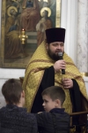 Проповедь после чтения Евангелия произнес клирик Свято-Духова кафедрального собора протодиакон Владимир Назаров.