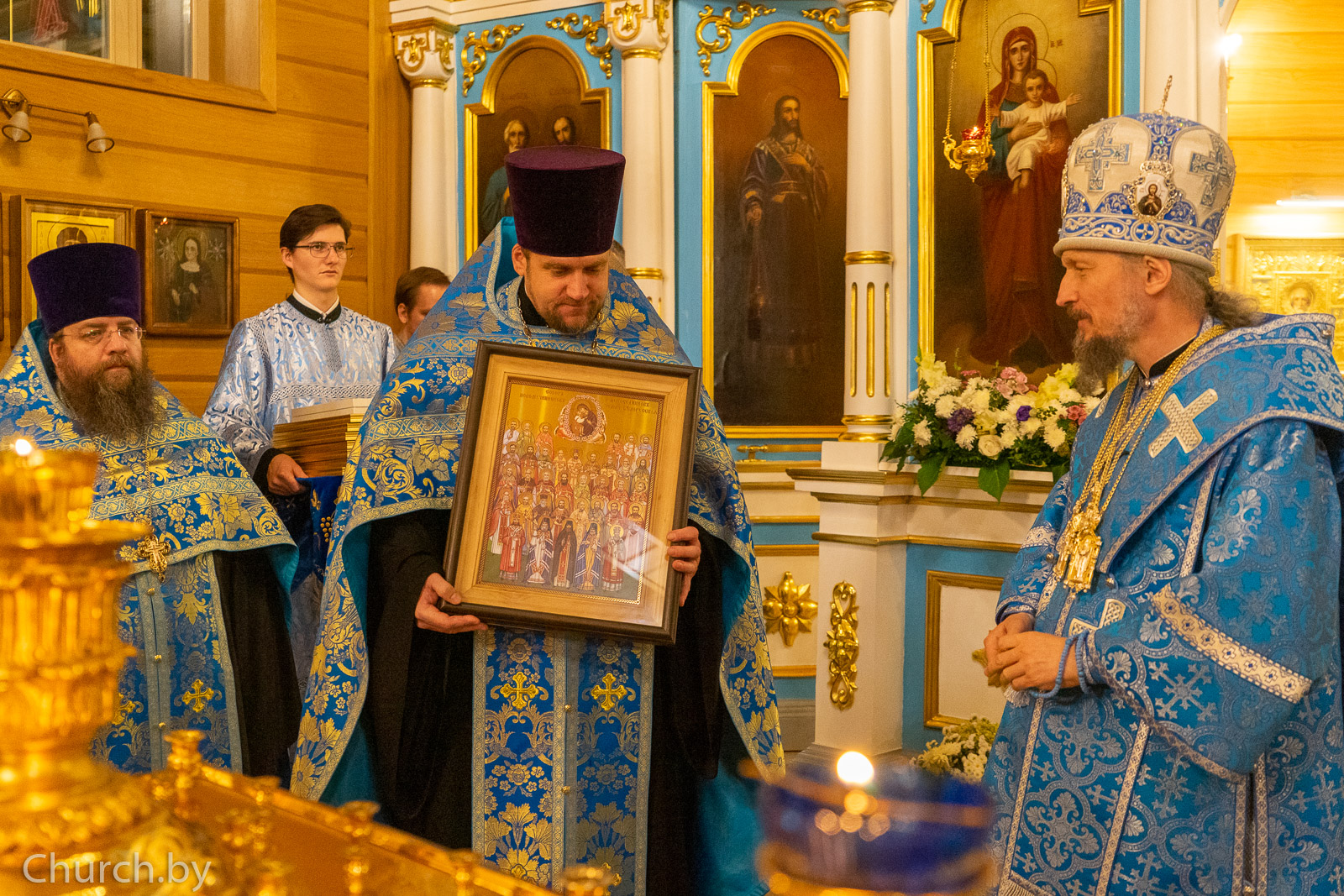 Его Высокопреосвященство поблагодарил отца Геннадия, поздравил прихожан храма с престольным праздником и обратился к присутствующим с архипастырским словом. В память о событии архипастырь передал в дар приходу икону Белорусских святых, на которой в том числе изобращен священномученик Иоанн Панкратович, пастырь Чижевичский.