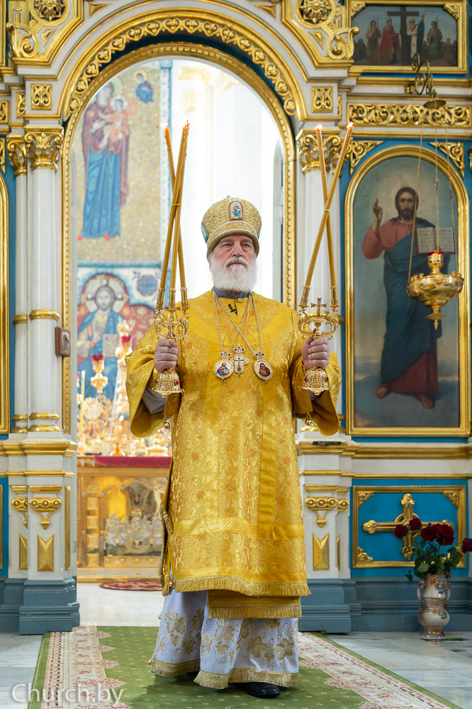 Его Высокопреосвященству сослужили секретарь Минской епархии протоиерей Андрей Волков и клирики кафедрального собора.