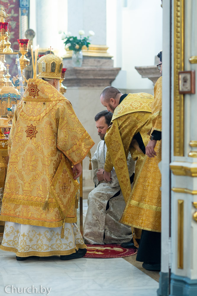 Его Высокопреосвященству сослужили: первый проректор Института теологии БГУ протоиерей Сергий Гордун, секретарь Минской епархии протоиерей Андрей Волков и клирики кафедрального собора.