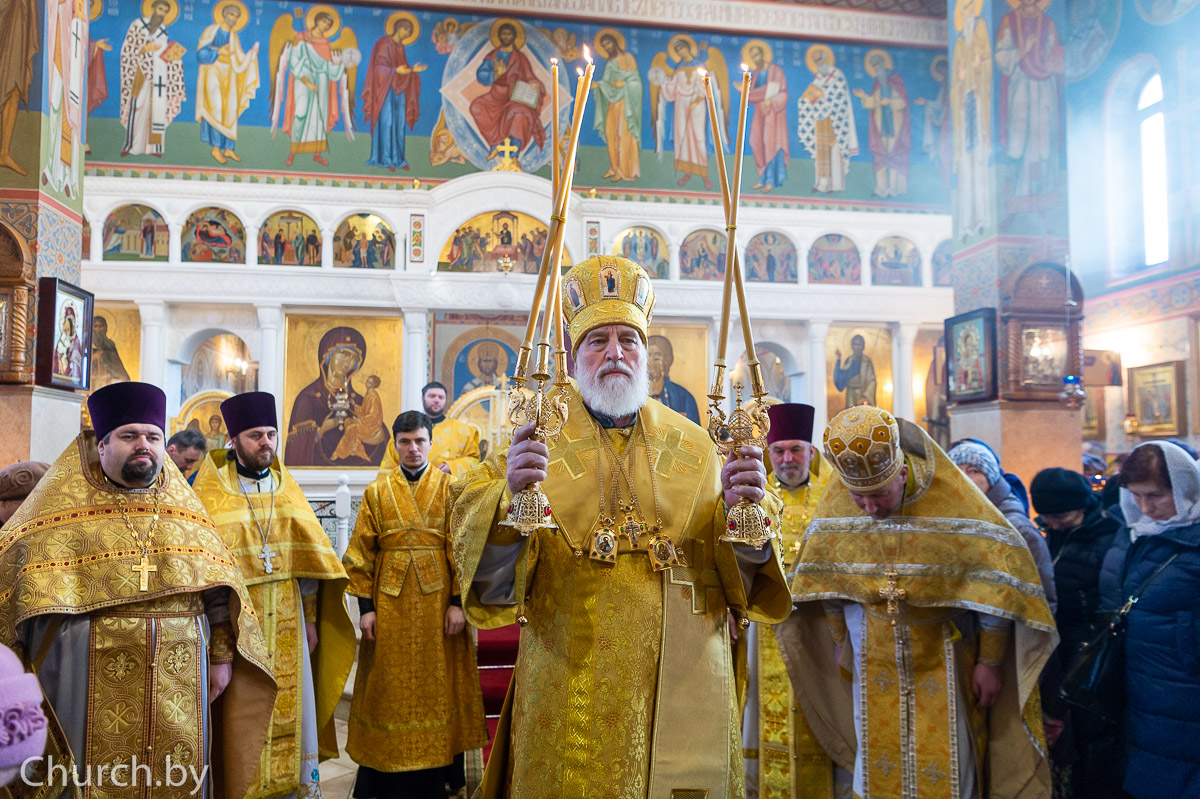 Его Высокопреосвященству сослужили: настоятель Андреевского храма протоиерей Петр Демьянчук, секретарь Минской епархии протоиерей Андрей Волков и клирики храма.