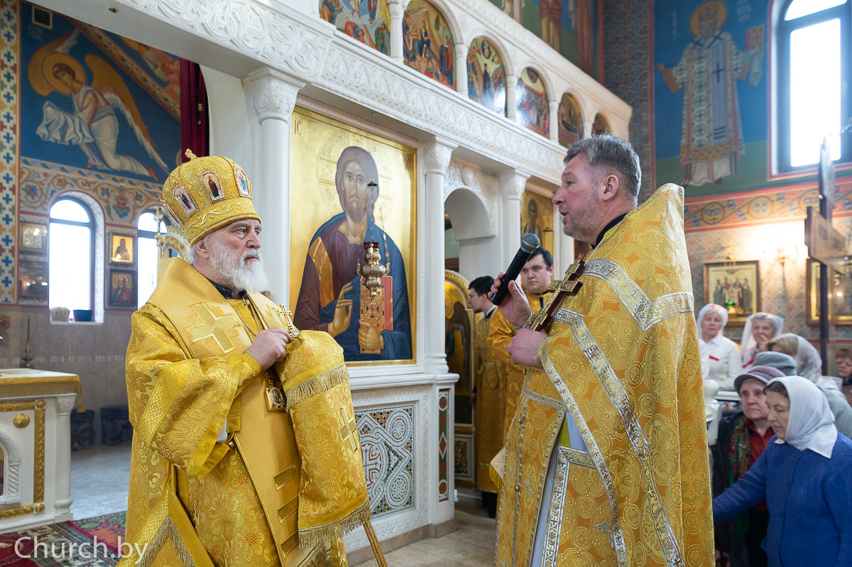 По окончании богослужения митрополит Павел удостоил протоиерея Петра Демьянчука медали ордена святителя Кирилла Туровского во внимание к его усердным трудам во славу Православной Церкви и в связи с 30-летием пресвитерской хиротонии, а затем обратился ко всем молящимся в храме со словом назидания.