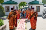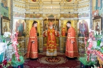 Его Высокопреосвященству сослужили: настоятель храма протоиерей Иоанн Хорошевич; благочинный 1-го Минского городского округа, настоятель Петропавловского собора протоиерей Георгий Латушко; секретарь Минской епархии протоиерей Андрей Волков и клирики храма.