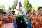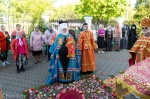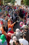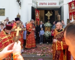 По заамвонной молитве владыка Экзарх возглавил крестный ход и славление святым женам-мироносицам.