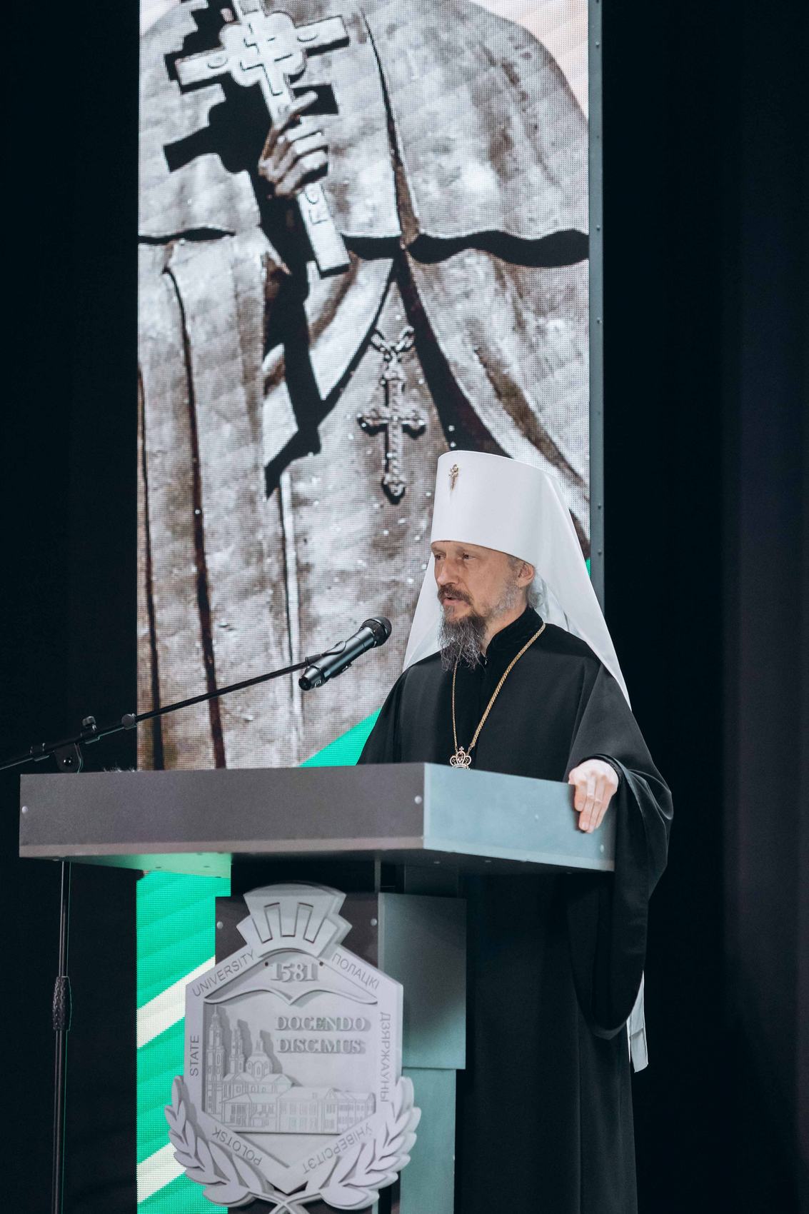 С приветственными словами к присутствующим обратились Уполномоченный по делам религий и национальностей Республики Беларусь Александр Румак, Председатель Президиума Национальной академии наук Беларуси Владимир Караник, ректор Полоцкого государственного университета имени Евфросинии Полоцкой Юрий Романовский.
