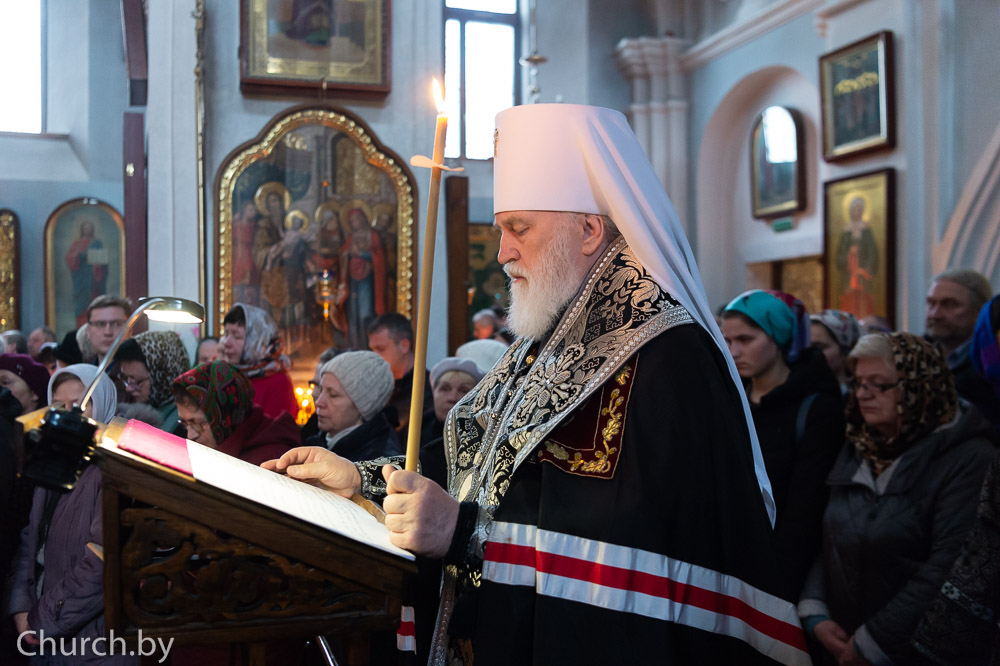 11 марта 2019 года, в понедельник первой седмицы Великого поста, митрополит Минский и Заславский Павел, Патриарший Экзарх всея Беларуси, совершил великое повечерие с чтением Великого канона преподобного Андрея Критского в Свято-Духовом кафедральном соборе города Минска.