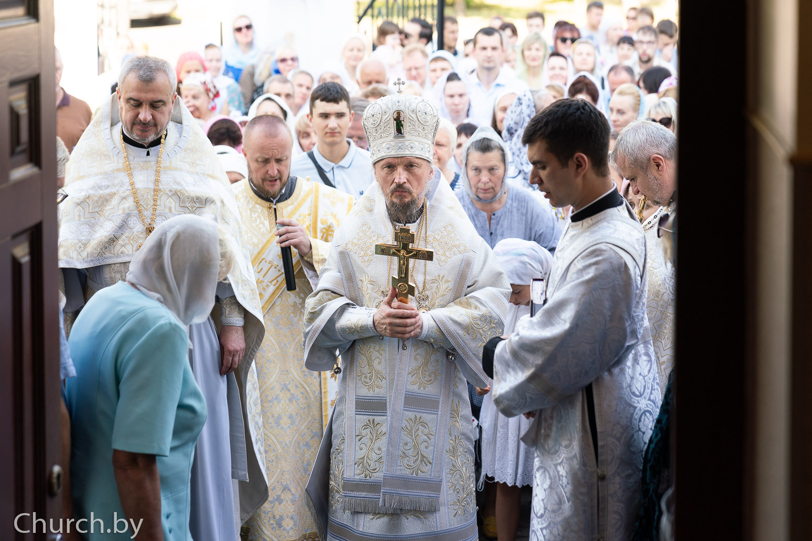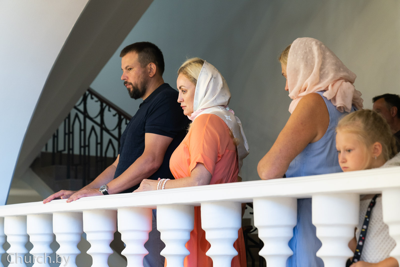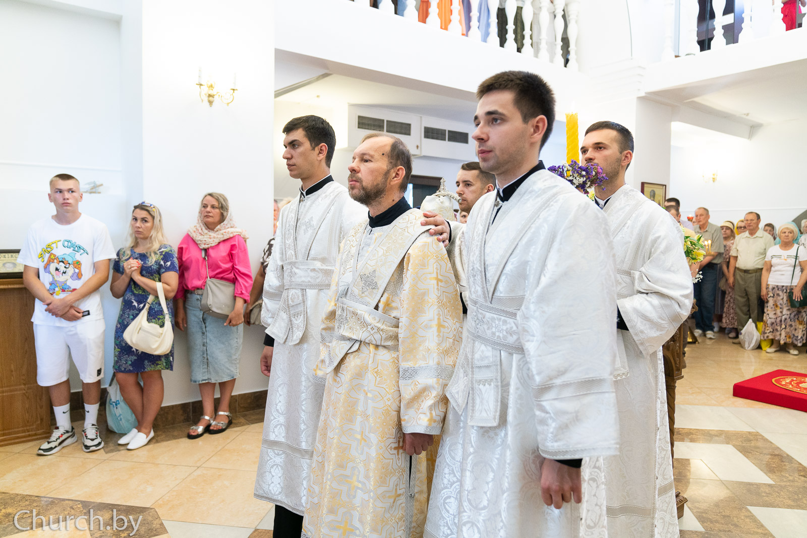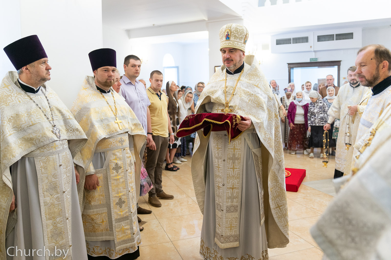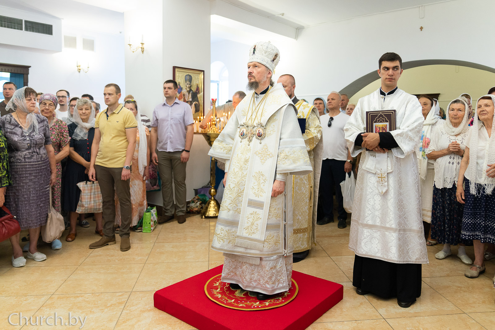 Его Высокопреосвященству сослужили: секретарь Минской епархии протоиерей Андрей Волков; председатель Синодального паломнического отдела Белорусской Православной Церкви, благочинный 7-го Минского городского округа, настоятель прихода храма преподобного Серафима Саровского города Минска протоиерей Александр Ширитон; настоятель Спасо-Преображенского храма города Минска протоиерей Святослав Левицкий; исполняющий обязанности настоятеля прихода храма иконы Божией Матери «Всецарица» в городе Минске протоиерей Николай Суханович; председатель Синодального отдела религиозного образования и катехизации Белорусской Православной Церкви, настоятель прихода храма святой великомученицы Варвары города Минска, исполняющий обязанности клирика прихода храма священномученика Владимира Хираско в городе Минске иерей Стефан Воропай и клирики прихода.