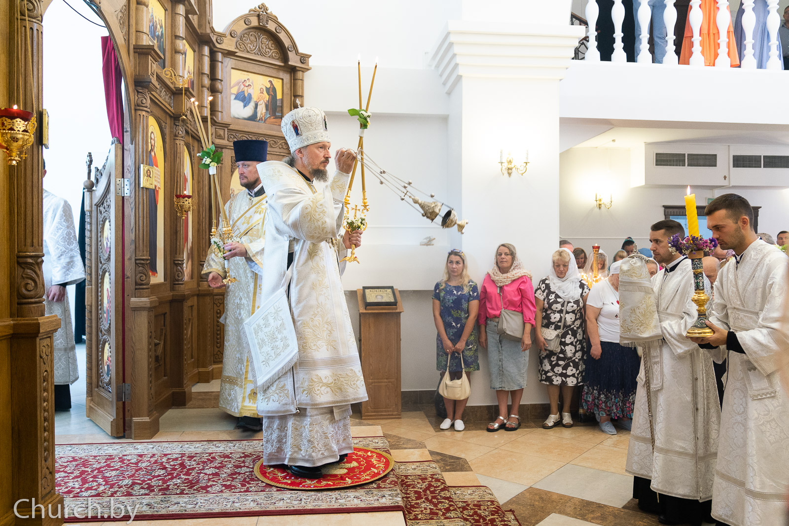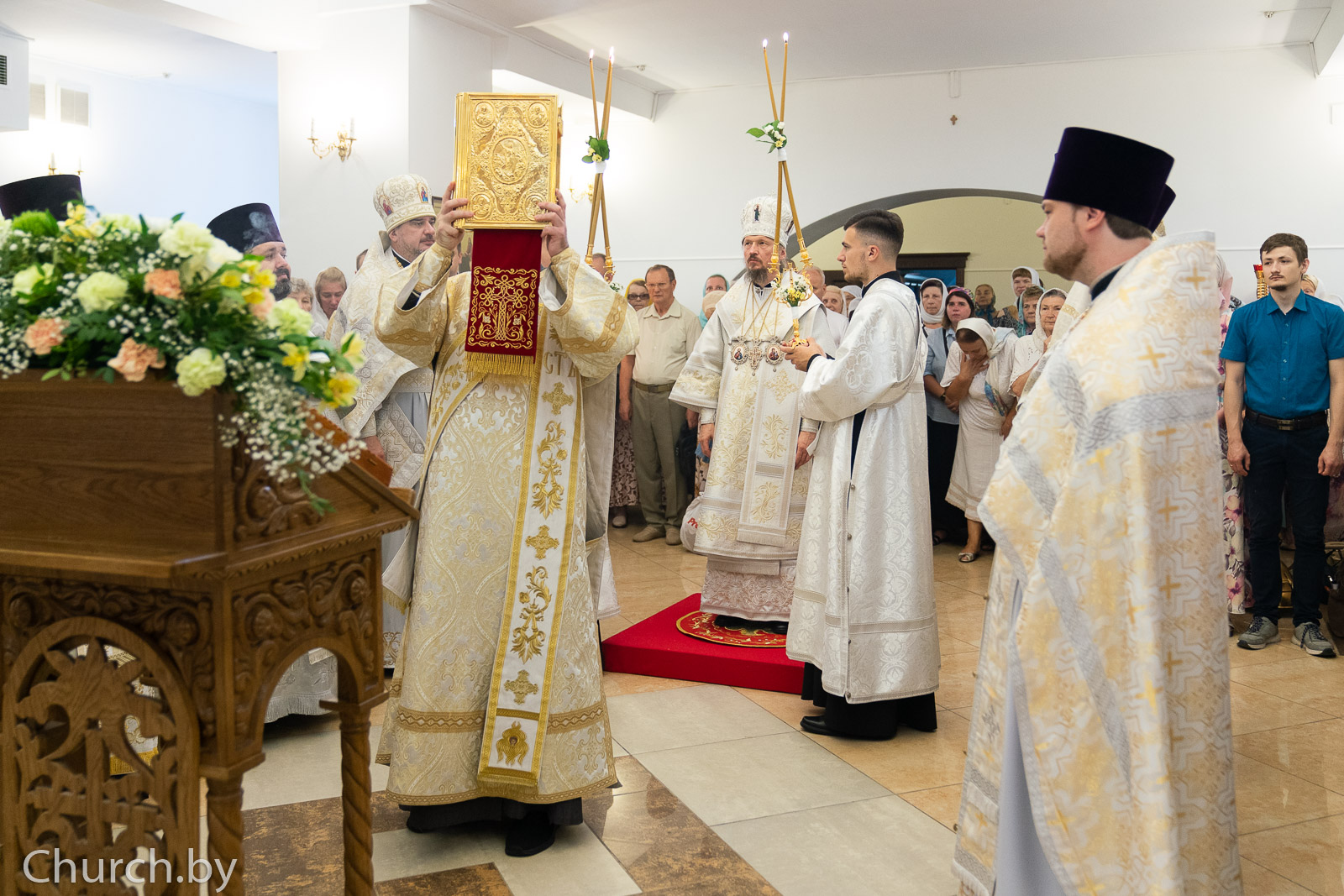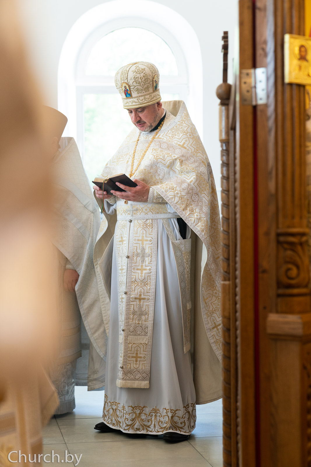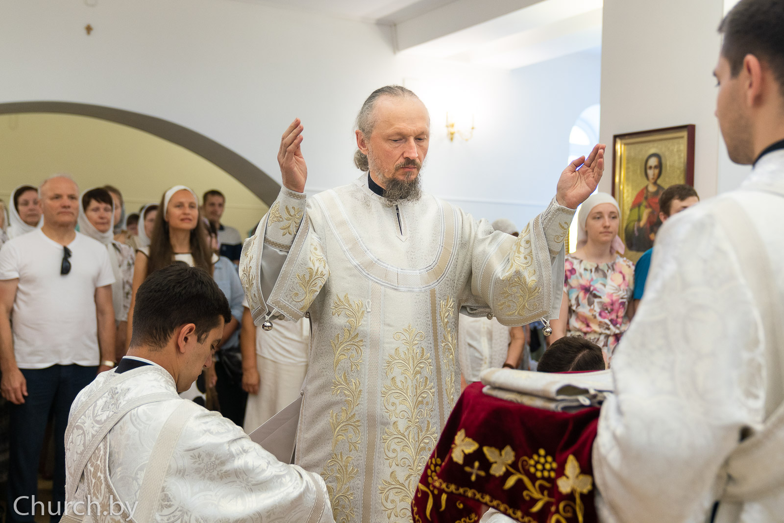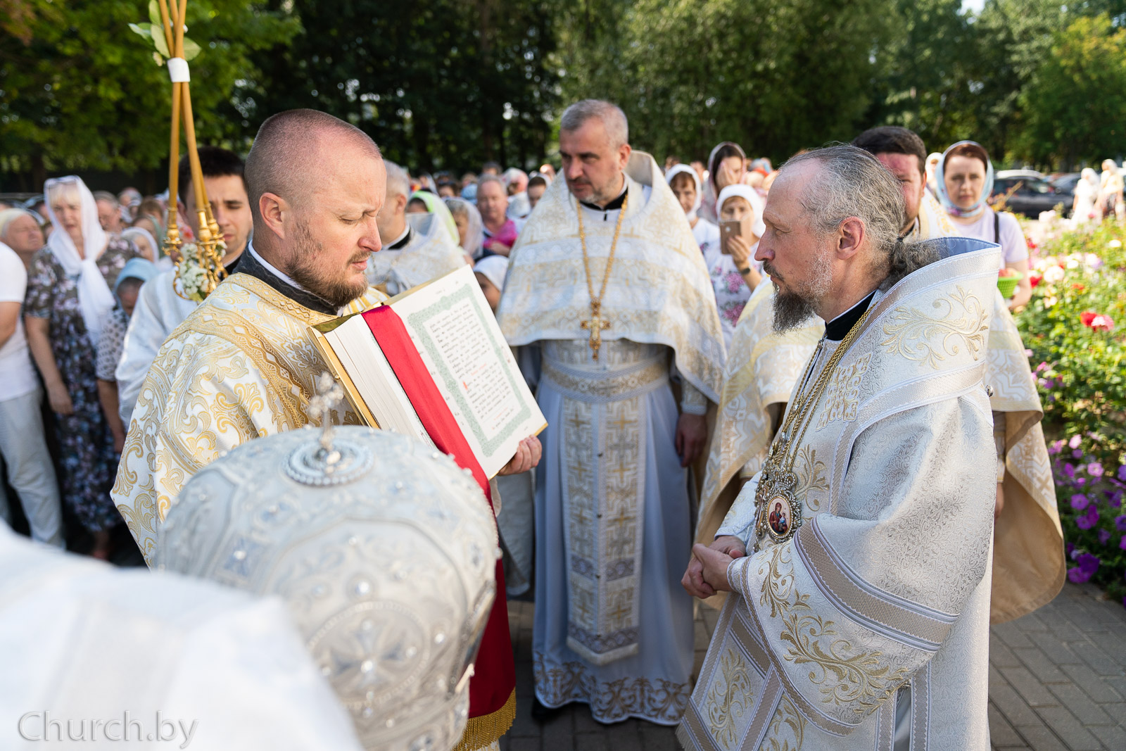 Его Высокопреосвященству сослужили: секретарь Минской епархии протоиерей Андрей Волков; председатель Синодального паломнического отдела Белорусской Православной Церкви, благочинный 7-го Минского городского округа, настоятель прихода храма преподобного Серафима Саровского города Минска протоиерей Александр Ширитон; настоятель Спасо-Преображенского храма города Минска протоиерей Святослав Левицкий; исполняющий обязанности настоятеля прихода храма иконы Божией Матери «Всецарица» в городе Минске протоиерей Николай Суханович; председатель Синодального отдела религиозного образования и катехизации Белорусской Православной Церкви, настоятель прихода храма святой великомученицы Варвары города Минска, исполняющий обязанности клирика прихода храма священномученика Владимира Хираско в городе Минске иерей Стефан Воропай и клирики прихода.