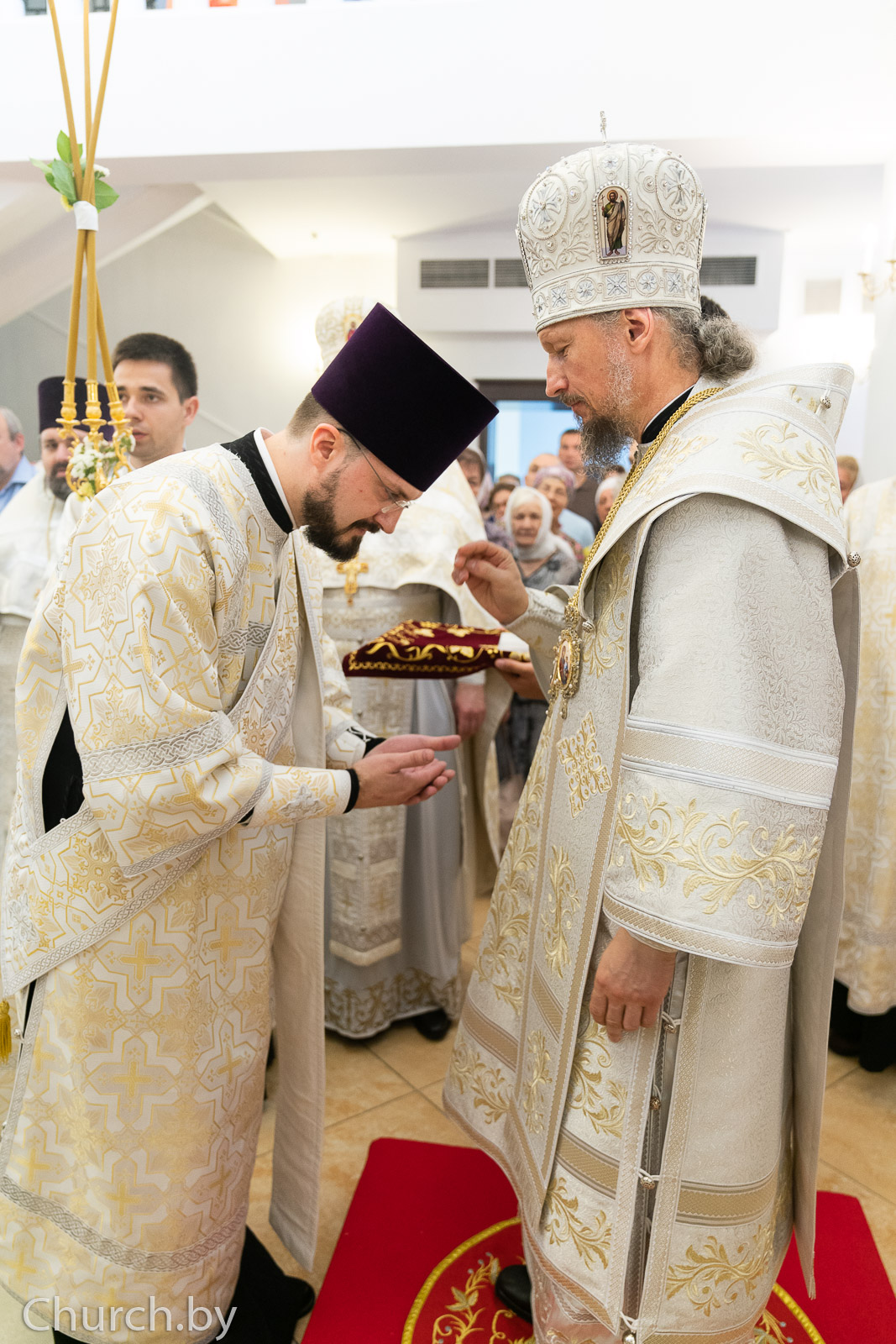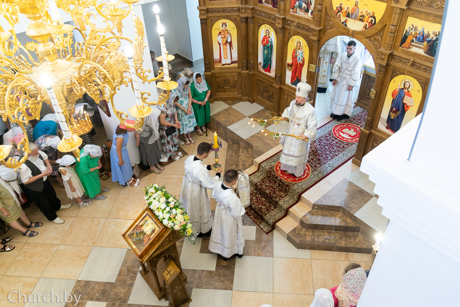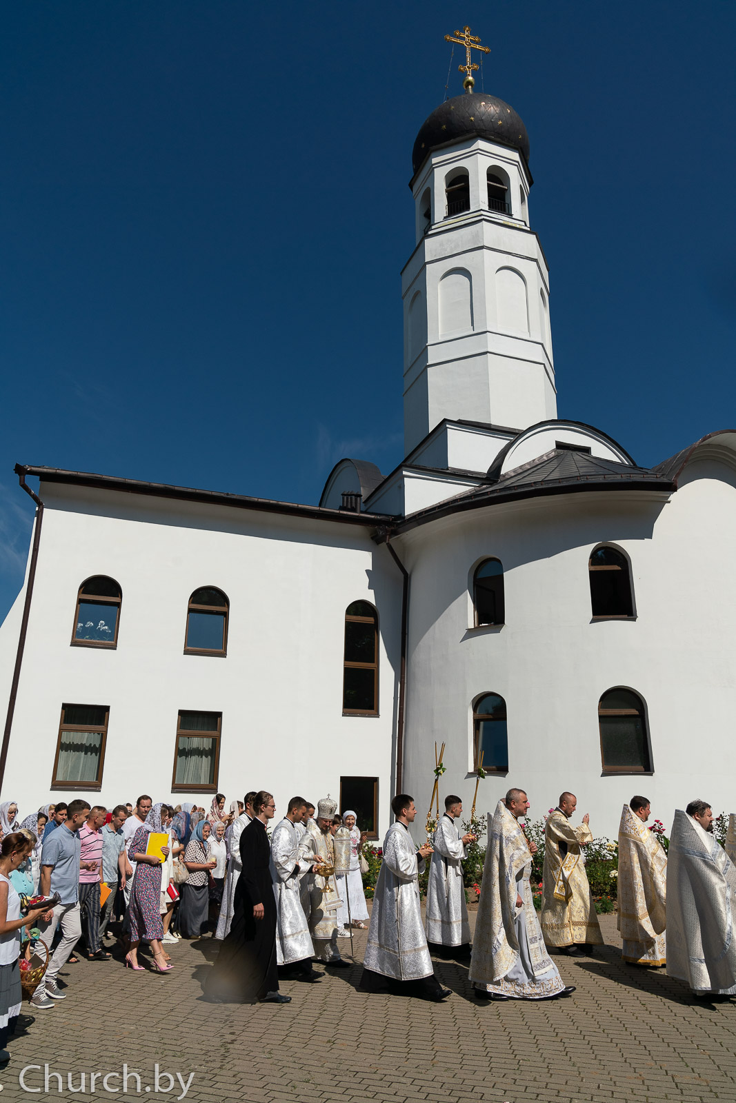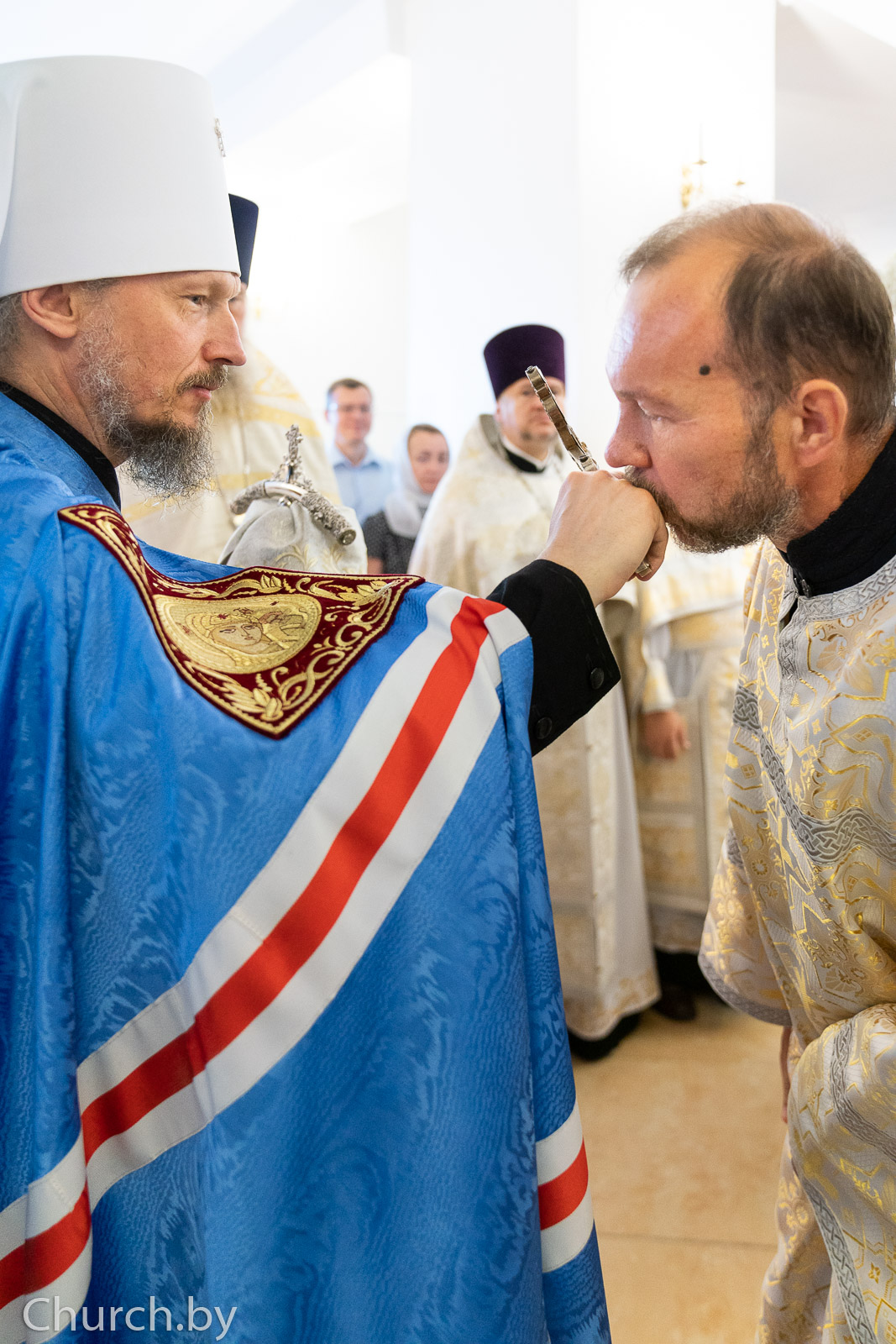Его Высокопреосвященству сослужили: секретарь Минской епархии протоиерей Андрей Волков; председатель Синодального паломнического отдела Белорусской Православной Церкви, благочинный 7-го Минского городского округа, настоятель прихода храма преподобного Серафима Саровского города Минска протоиерей Александр Ширитон; настоятель Спасо-Преображенского храма города Минска протоиерей Святослав Левицкий; исполняющий обязанности настоятеля прихода храма иконы Божией Матери «Всецарица» в городе Минске протоиерей Николай Суханович; председатель Синодального отдела религиозного образования и катехизации Белорусской Православной Церкви, настоятель прихода храма святой великомученицы Варвары города Минска, исполняющий обязанности клирика прихода храма священномученика Владимира Хираско в городе Минске иерей Стефан Воропай и клирики прихода.