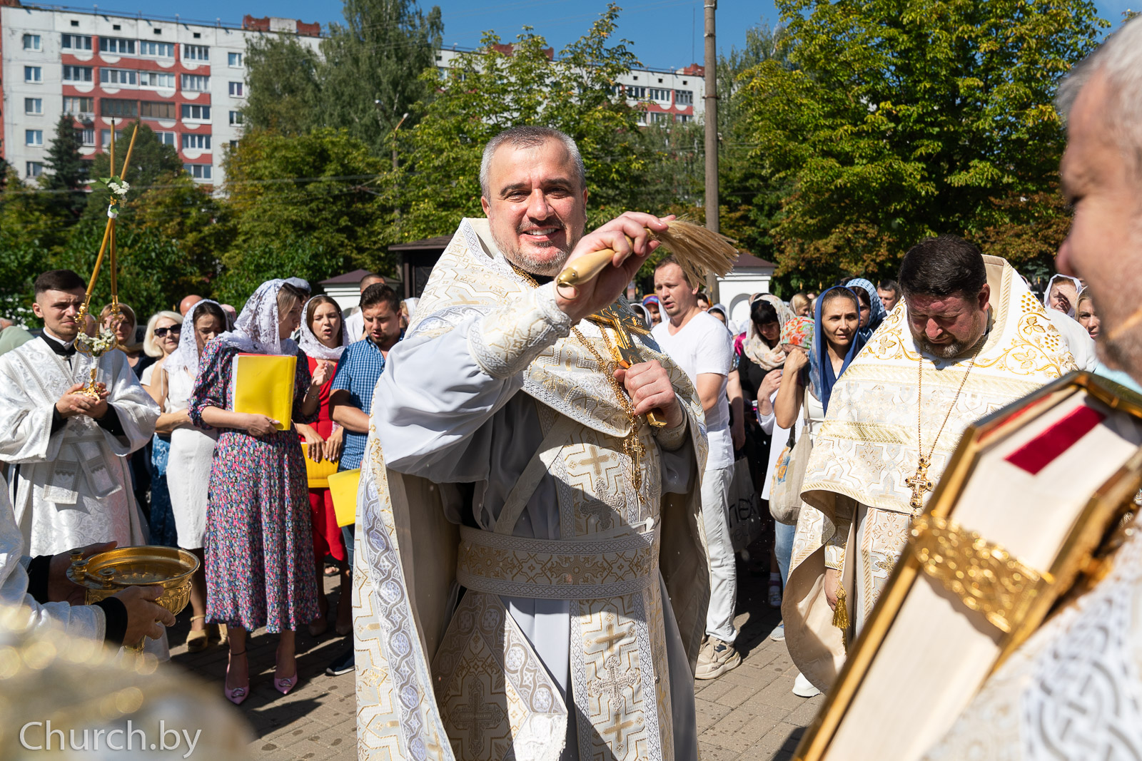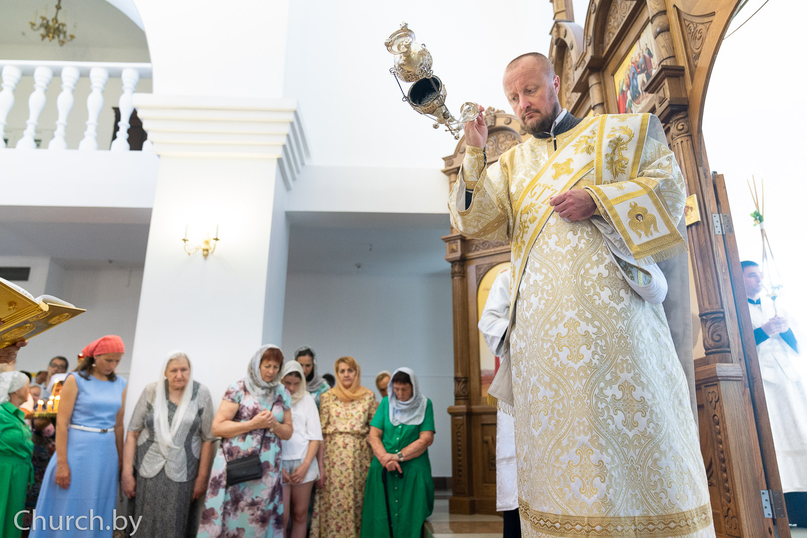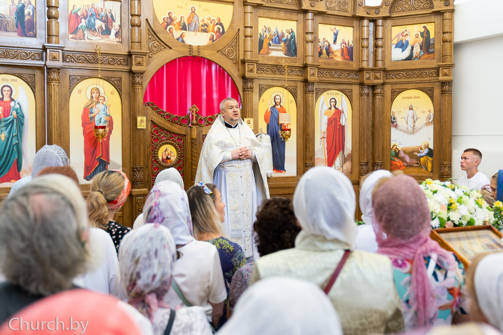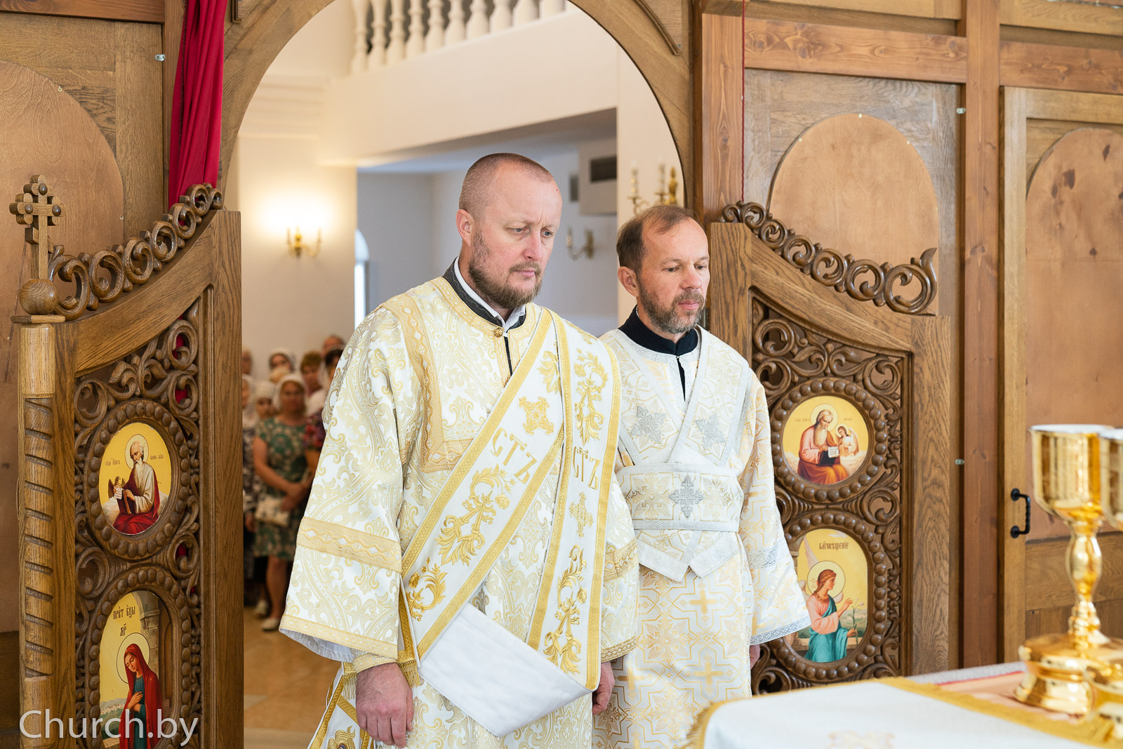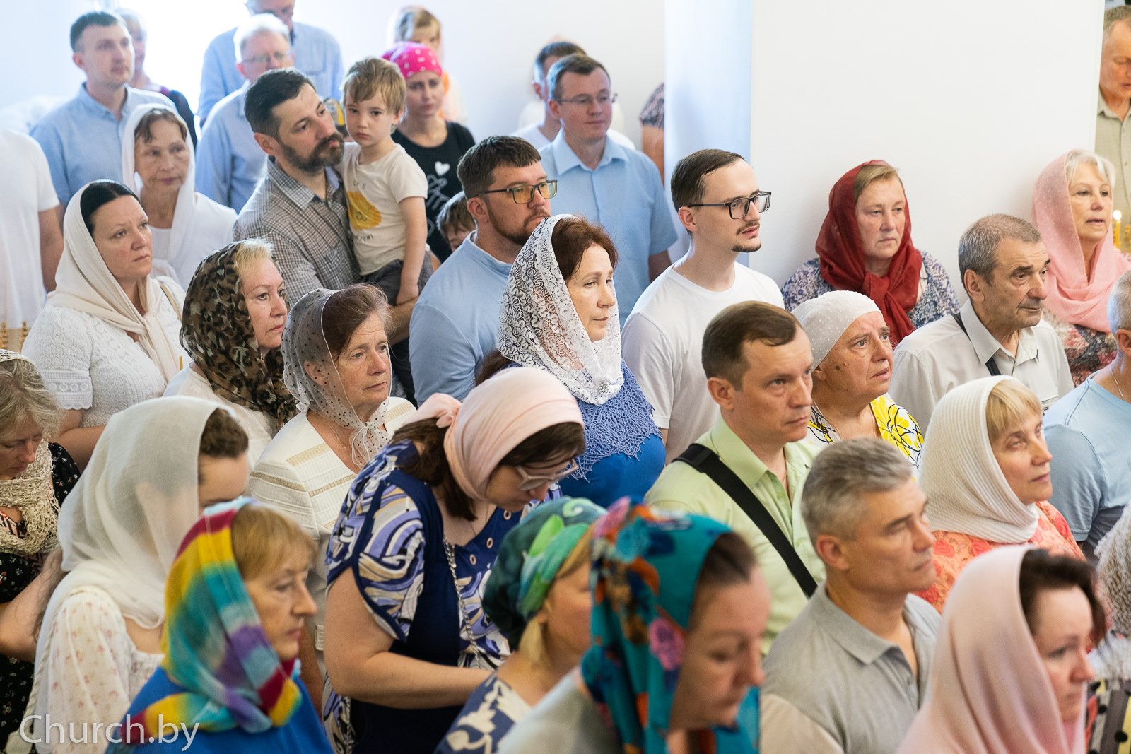 Его Высокопреосвященству сослужили: секретарь Минской епархии протоиерей Андрей Волков; председатель Синодального паломнического отдела Белорусской Православной Церкви, благочинный 7-го Минского городского округа, настоятель прихода храма преподобного Серафима Саровского города Минска протоиерей Александр Ширитон; настоятель Спасо-Преображенского храма города Минска протоиерей Святослав Левицкий; исполняющий обязанности настоятеля прихода храма иконы Божией Матери «Всецарица» в городе Минске протоиерей Николай Суханович; председатель Синодального отдела религиозного образования и катехизации Белорусской Православной Церкви, настоятель прихода храма святой великомученицы Варвары города Минска, исполняющий обязанности клирика прихода храма священномученика Владимира Хираско в городе Минске иерей Стефан Воропай и клирики прихода.