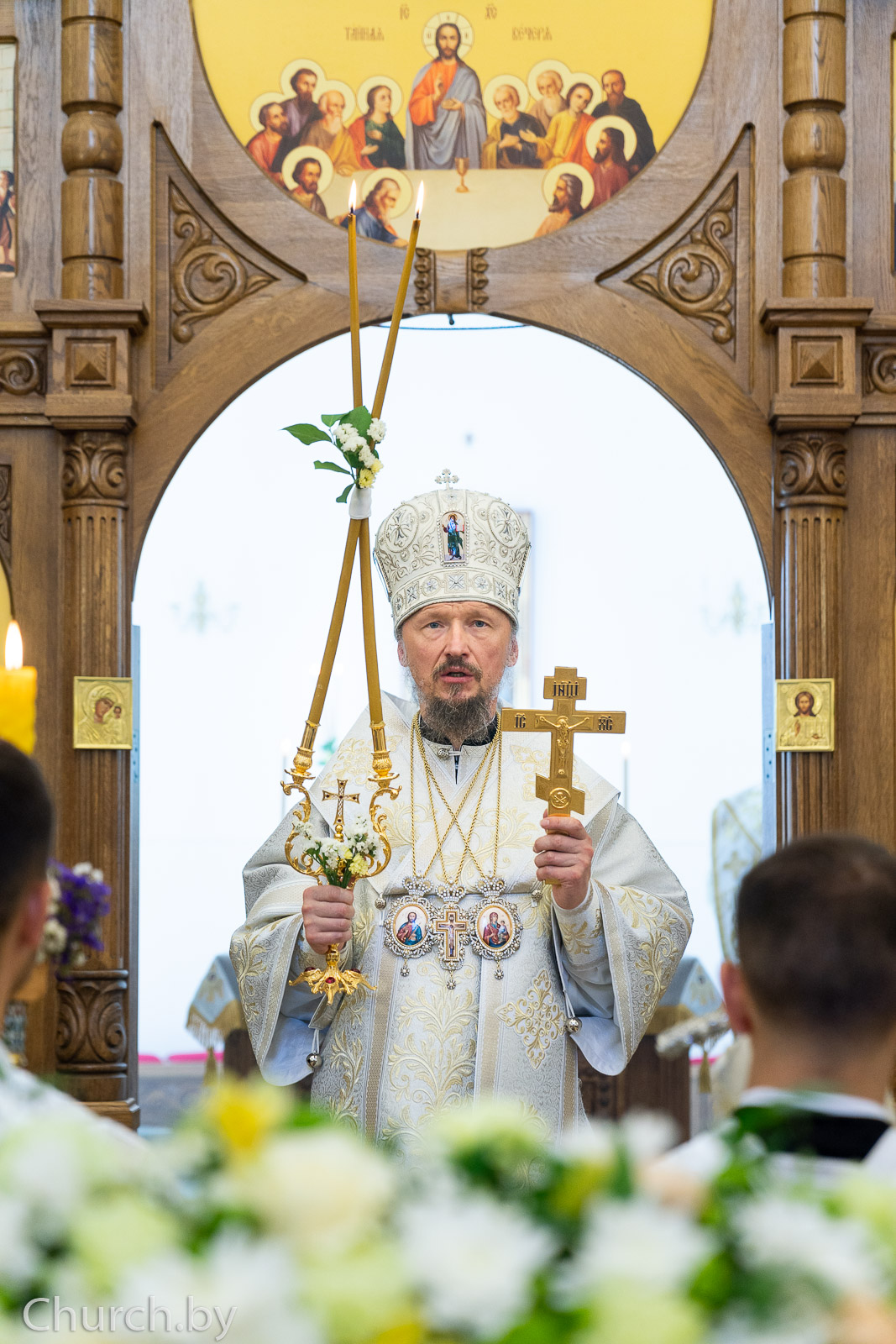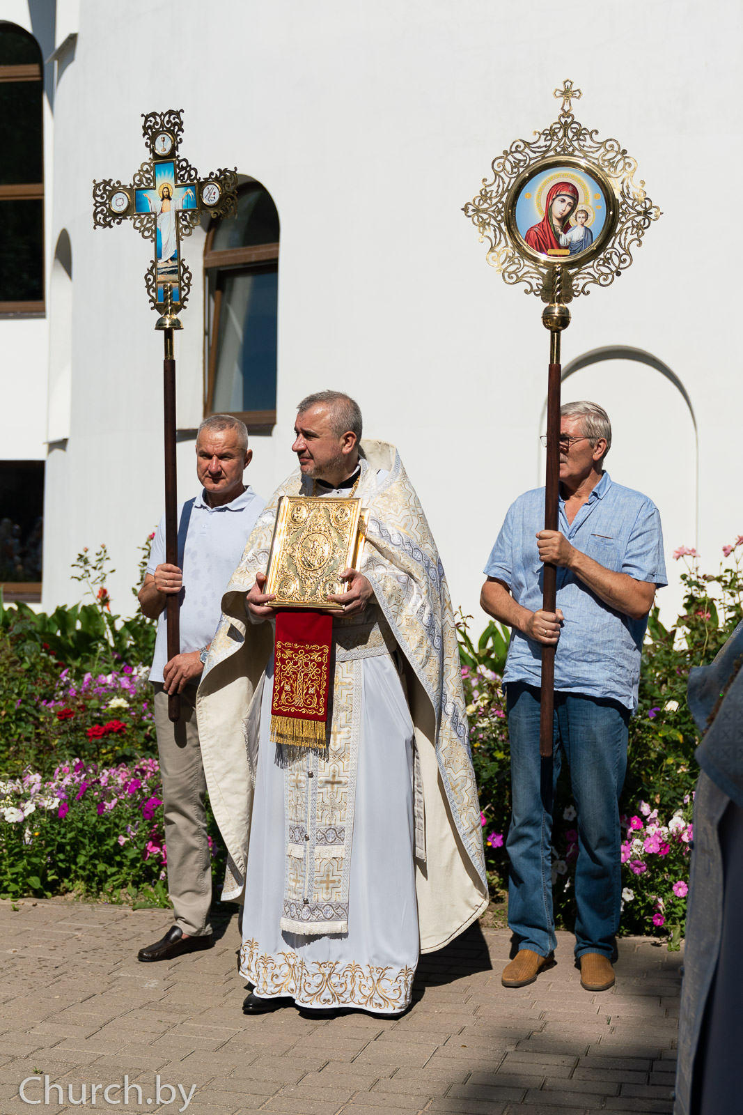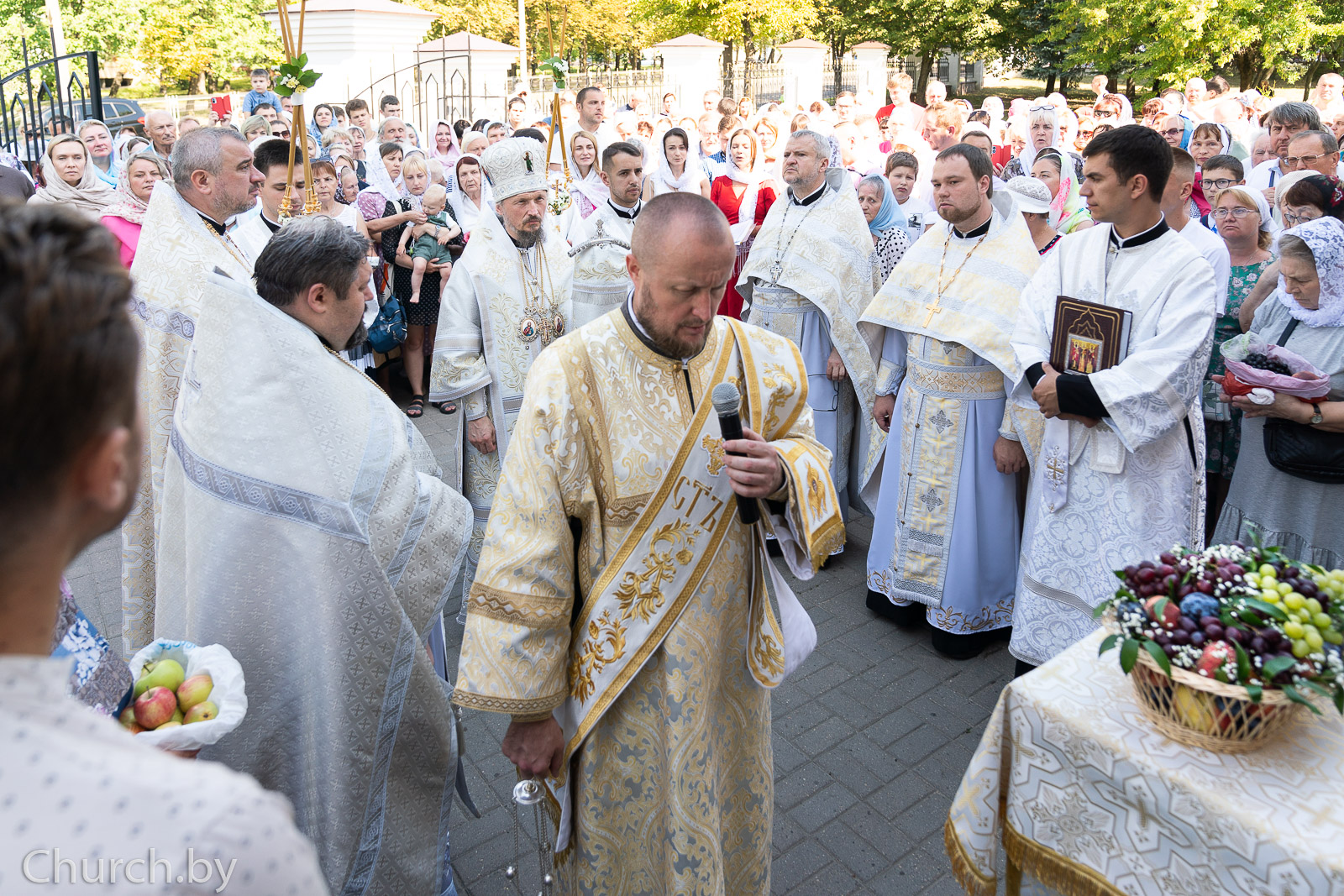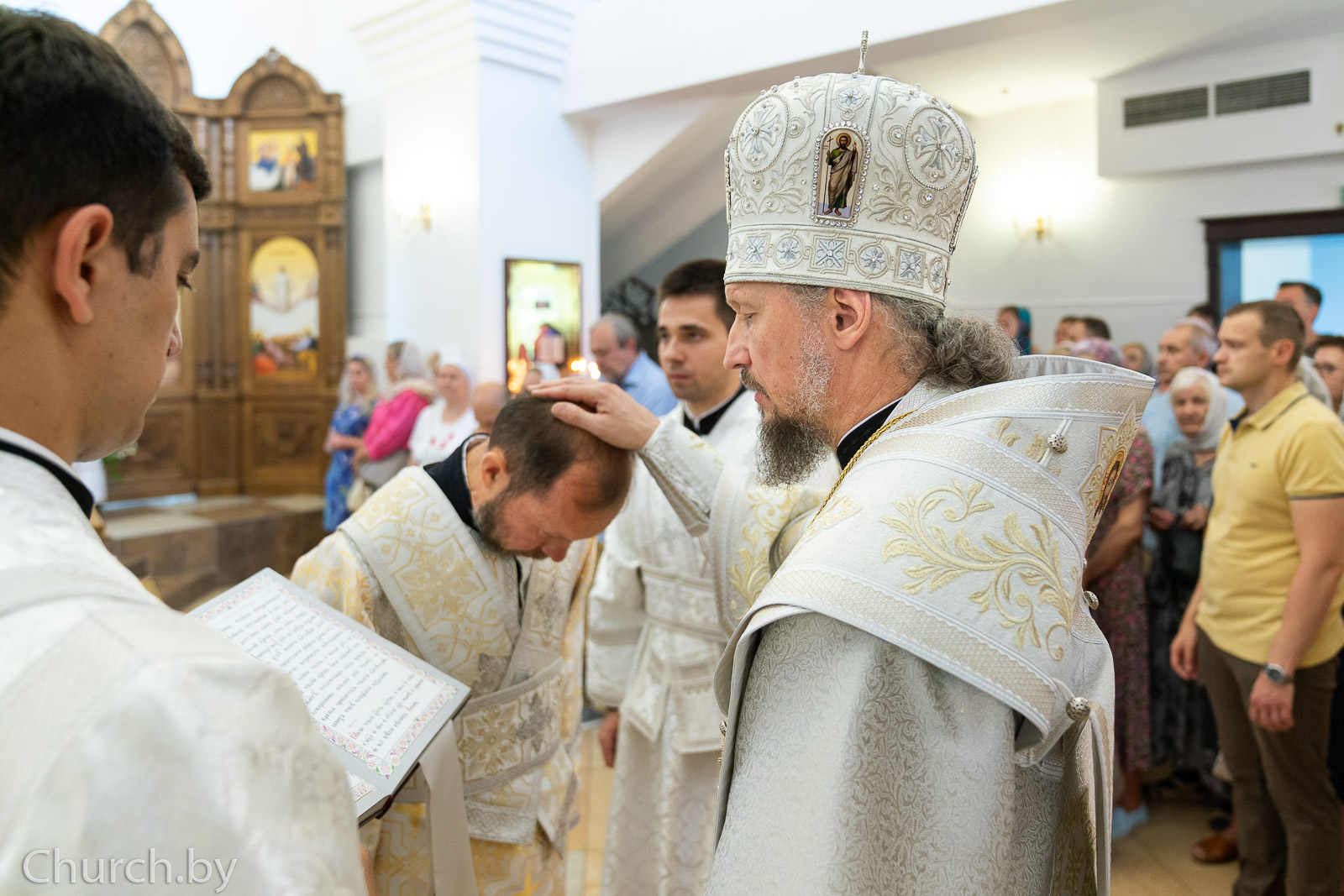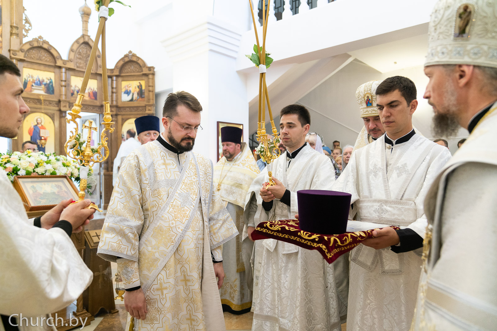 Его Высокопреосвященству сослужили: секретарь Минской епархии протоиерей Андрей Волков; председатель Синодального паломнического отдела Белорусской Православной Церкви, благочинный 7-го Минского городского округа, настоятель прихода храма преподобного Серафима Саровского города Минска протоиерей Александр Ширитон; настоятель Спасо-Преображенского храма города Минска протоиерей Святослав Левицкий; исполняющий обязанности настоятеля прихода храма иконы Божией Матери «Всецарица» в городе Минске протоиерей Николай Суханович; председатель Синодального отдела религиозного образования и катехизации Белорусской Православной Церкви, настоятель прихода храма святой великомученицы Варвары города Минска, исполняющий обязанности клирика прихода храма священномученика Владимира Хираско в городе Минске иерей Стефан Воропай и клирики прихода.
