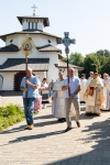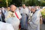По заамвонной молитве Патриарший Экзарх и сослужащие священнослужители совершили крестный ход с молебным пением и славление празднику.