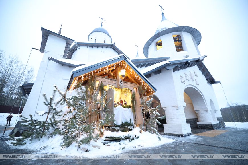В праздник Рождества Христова Патриарший Экзарх всея Беларуси и Президент Республики Беларусь А.Г. Лукашенко посетили храм в честь иконы Божией Матери «Млекопитательница» в деревне Околица Минского района