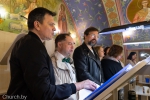 Его Высокопреосвященству сослужили секретарь Слуцкой епархии архимандрит Сергий (Брич), настоятель прихода кафедрального собора Рождества Христова в городе Солигорске протоиерей Сергий Чарный и клирики собора.