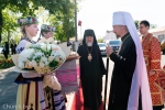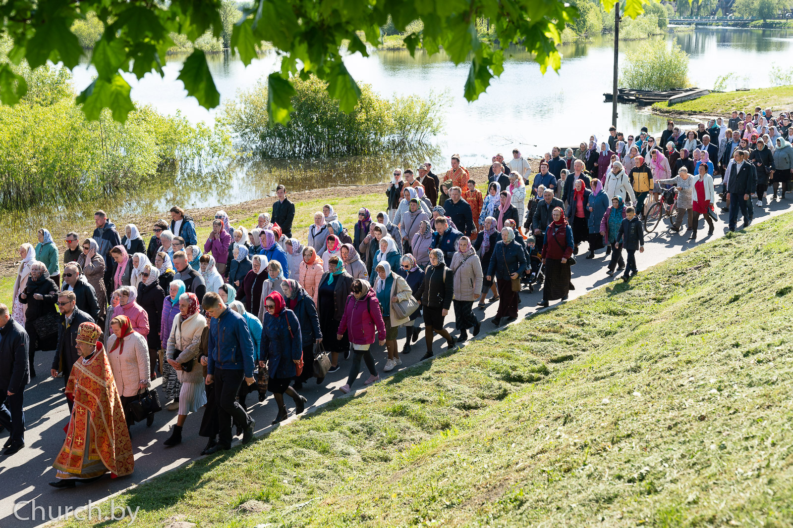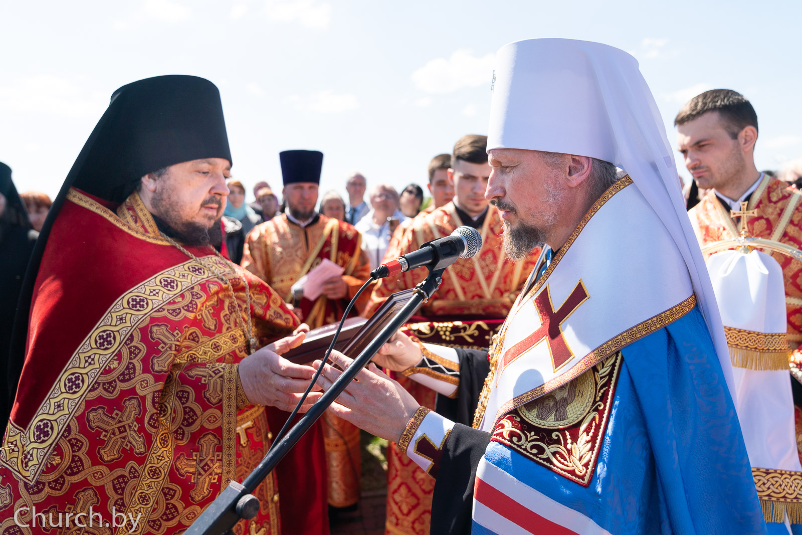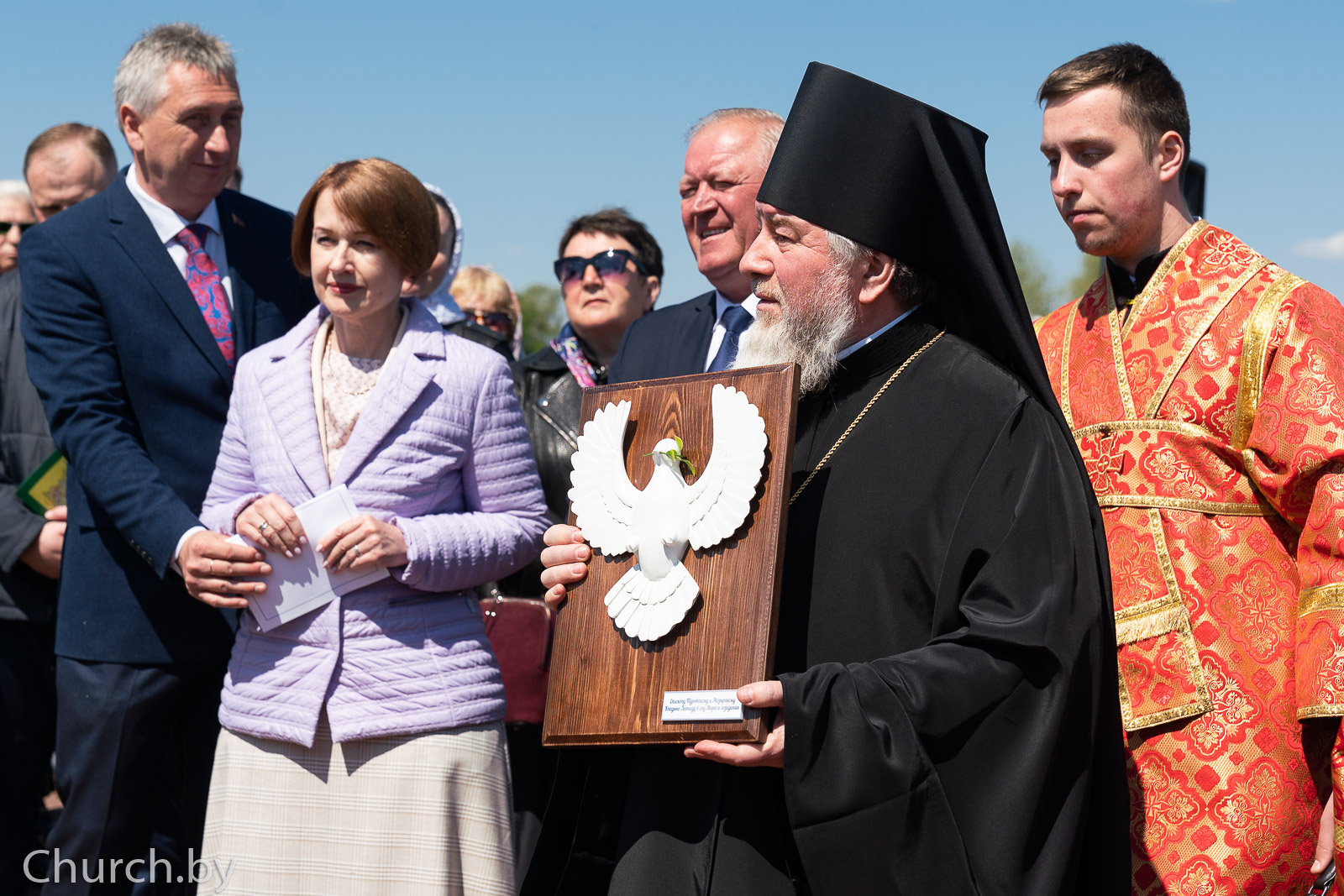 Епископат, духовенство, представители власти, прибывшие гости и паломники встречали Предстоятеля Белорусской Православной Церкви у памятника воинам Великой Отечественной войны, откуда крестным ходом проследовали к памятнику 1000-летия со дня основания Туровской епархии. К указанным памятникам Митрополит Вениамин вместе с преосвященными архипастырями возложил цветы, а у памятника воинам ВОВ после минуты молчания была провозглашена «Вечная память…».