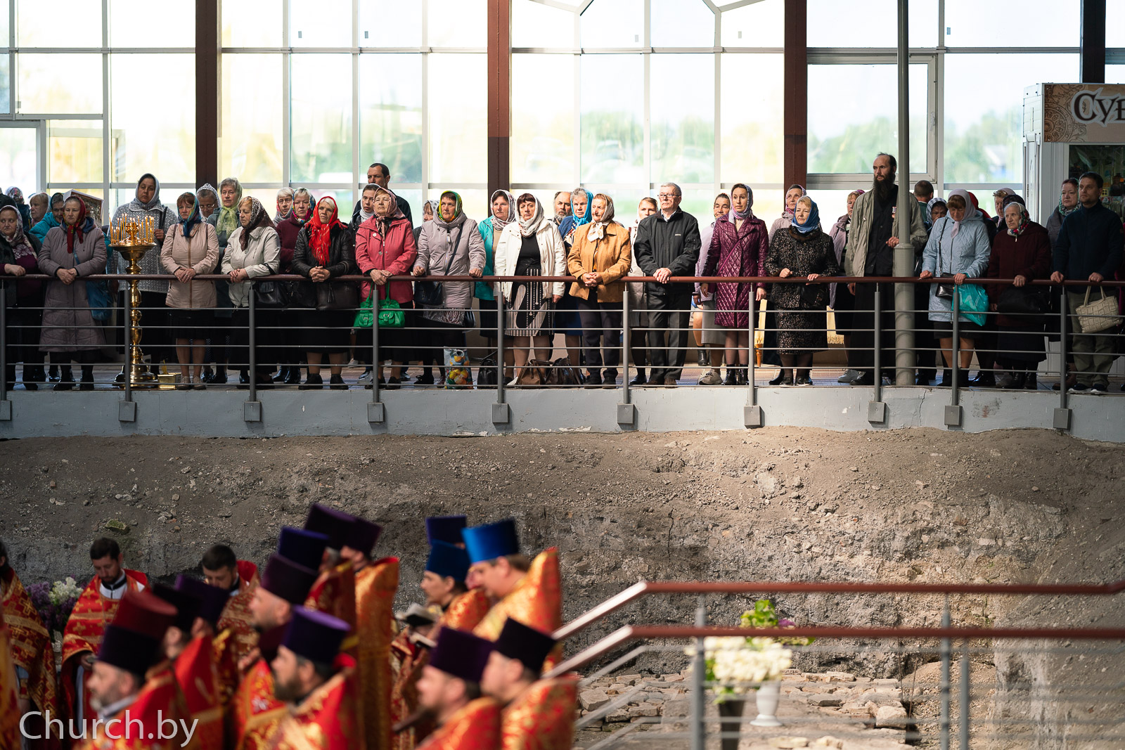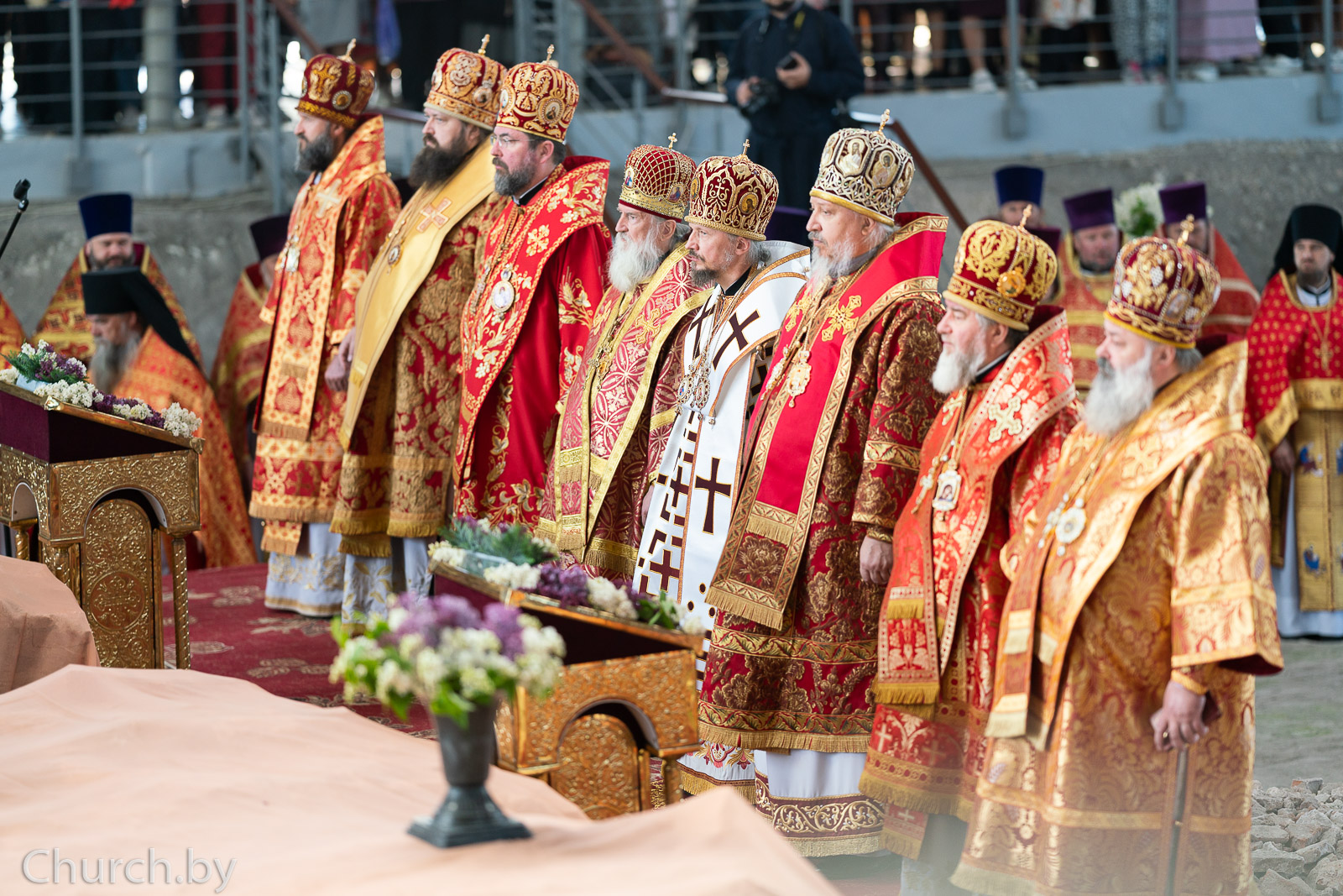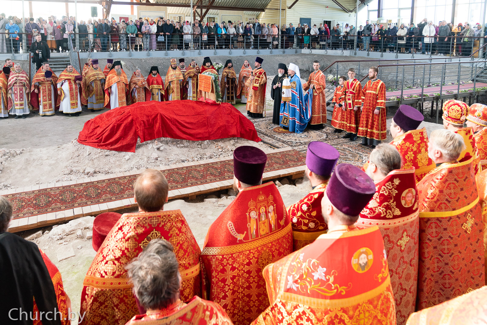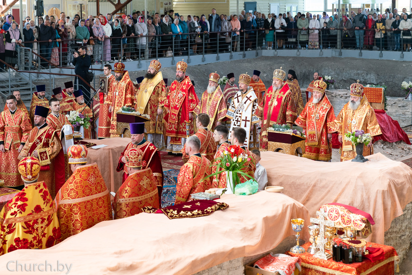 Божественная литургия, которую возглавил Патриарший Экзарх всея Беларуси, совершалась в павильоне над фундаментом древнего собора Туровских епископов, разрушенного землетрясением в XIII веке.