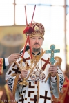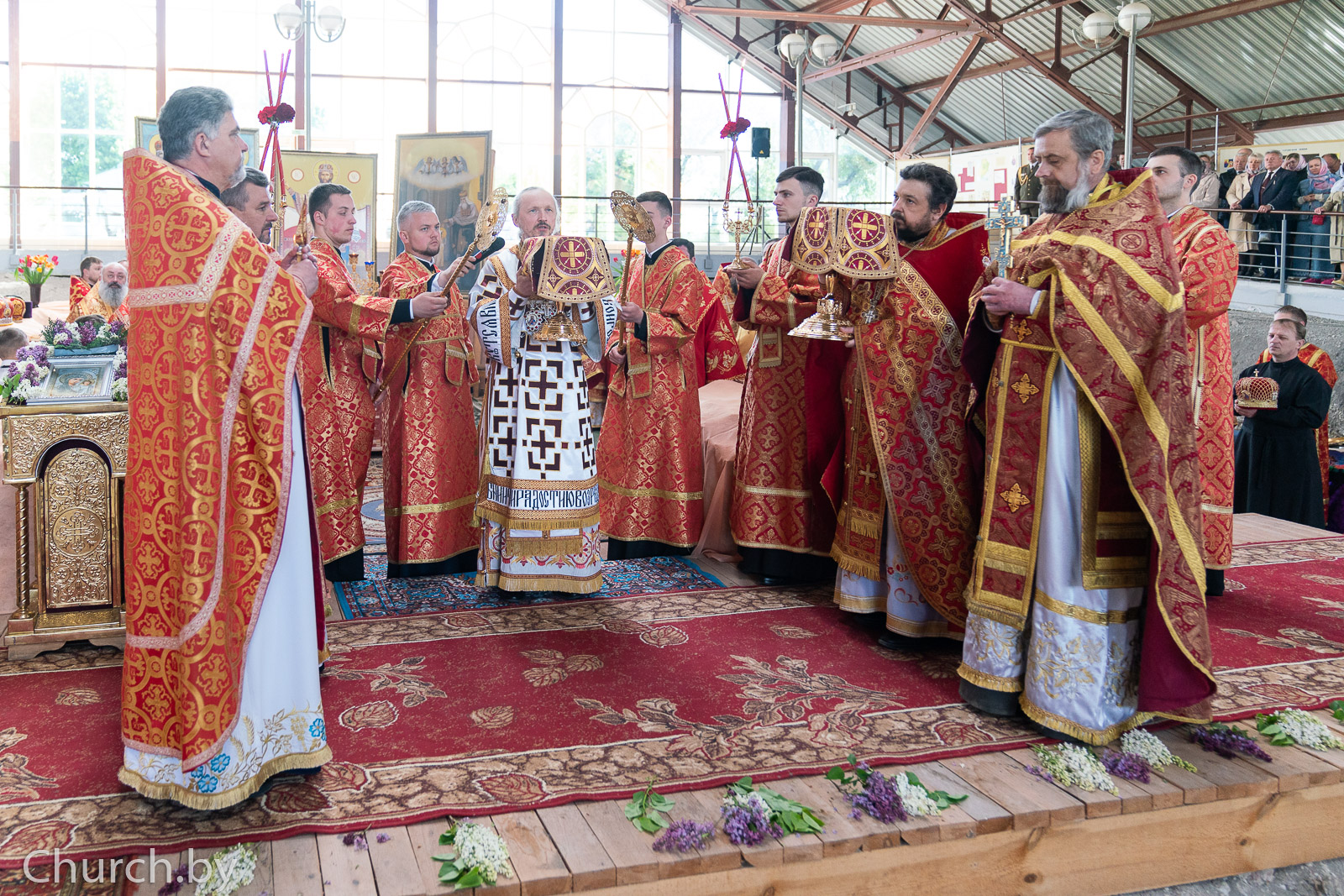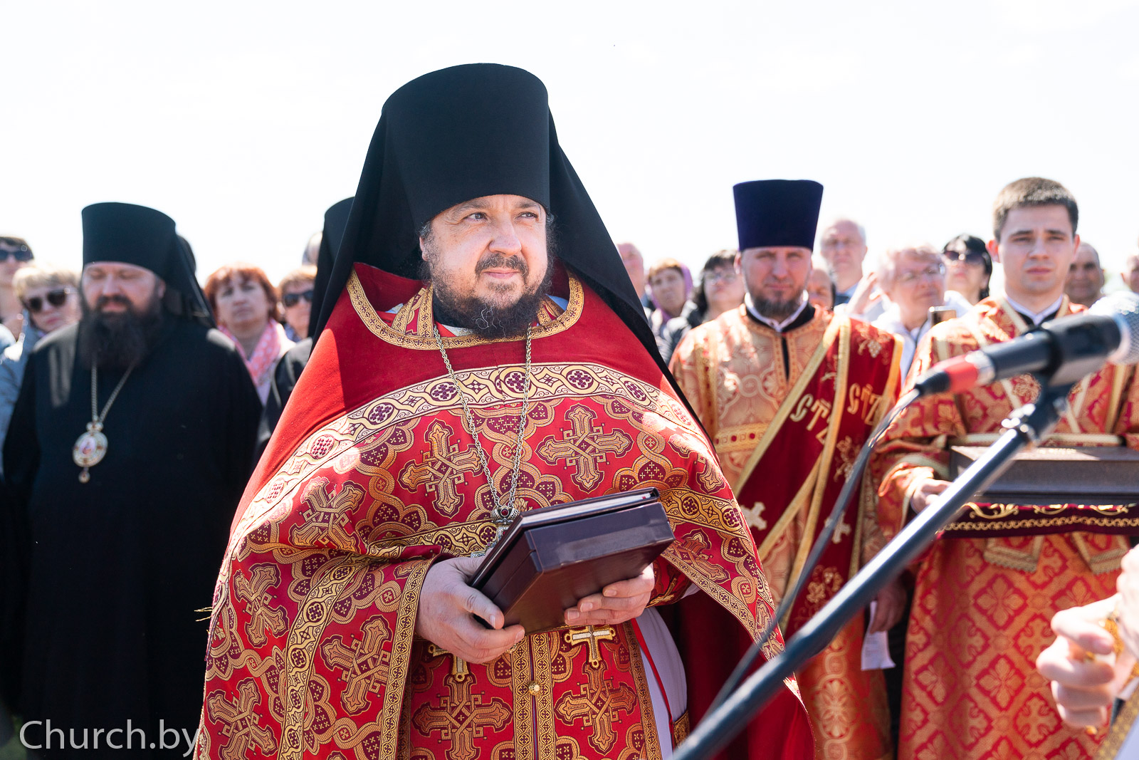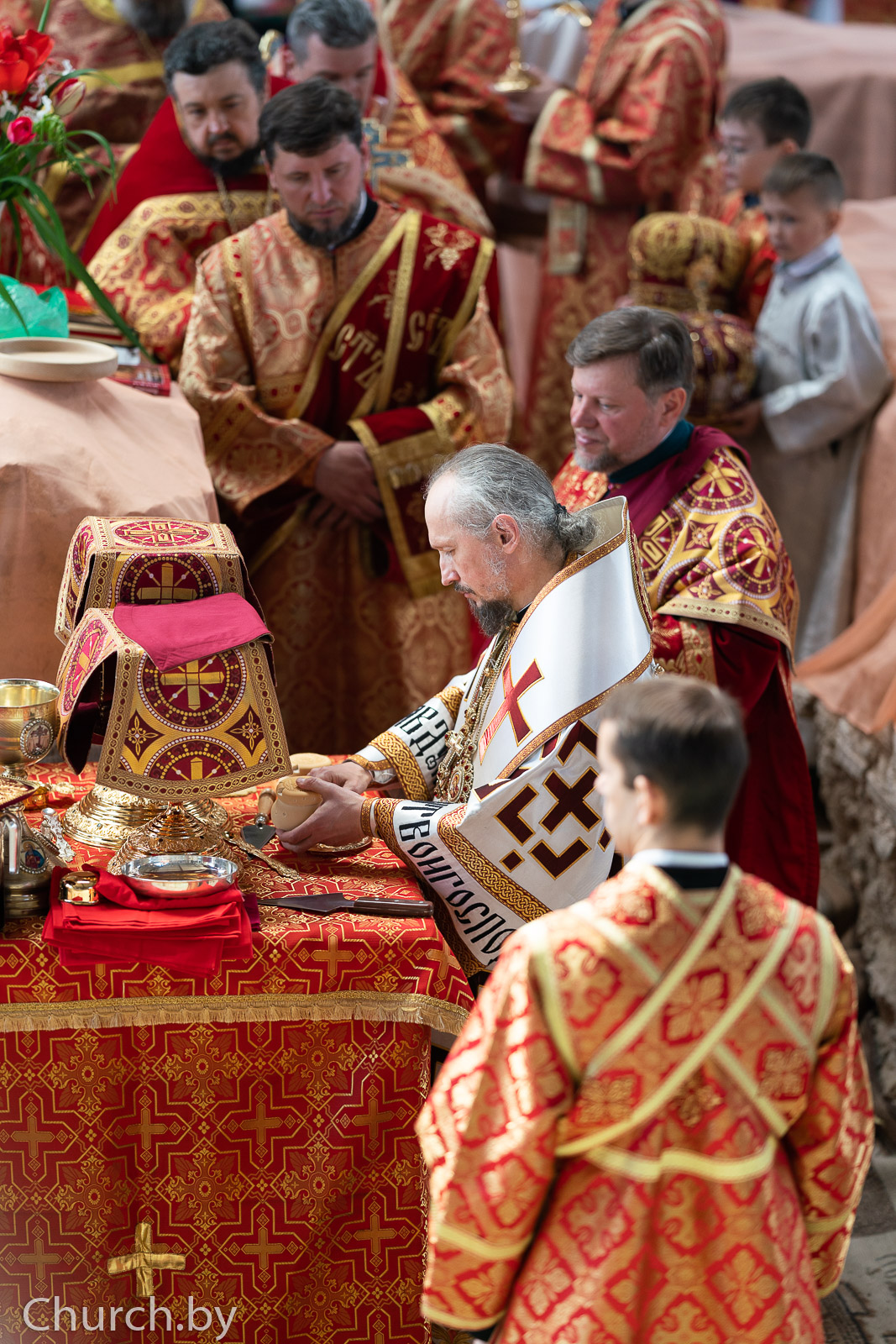 Божественная литургия, которую возглавил Патриарший Экзарх всея Беларуси, совершалась в павильоне над фундаментом древнего собора Туровских епископов, разрушенного землетрясением в XIII веке.