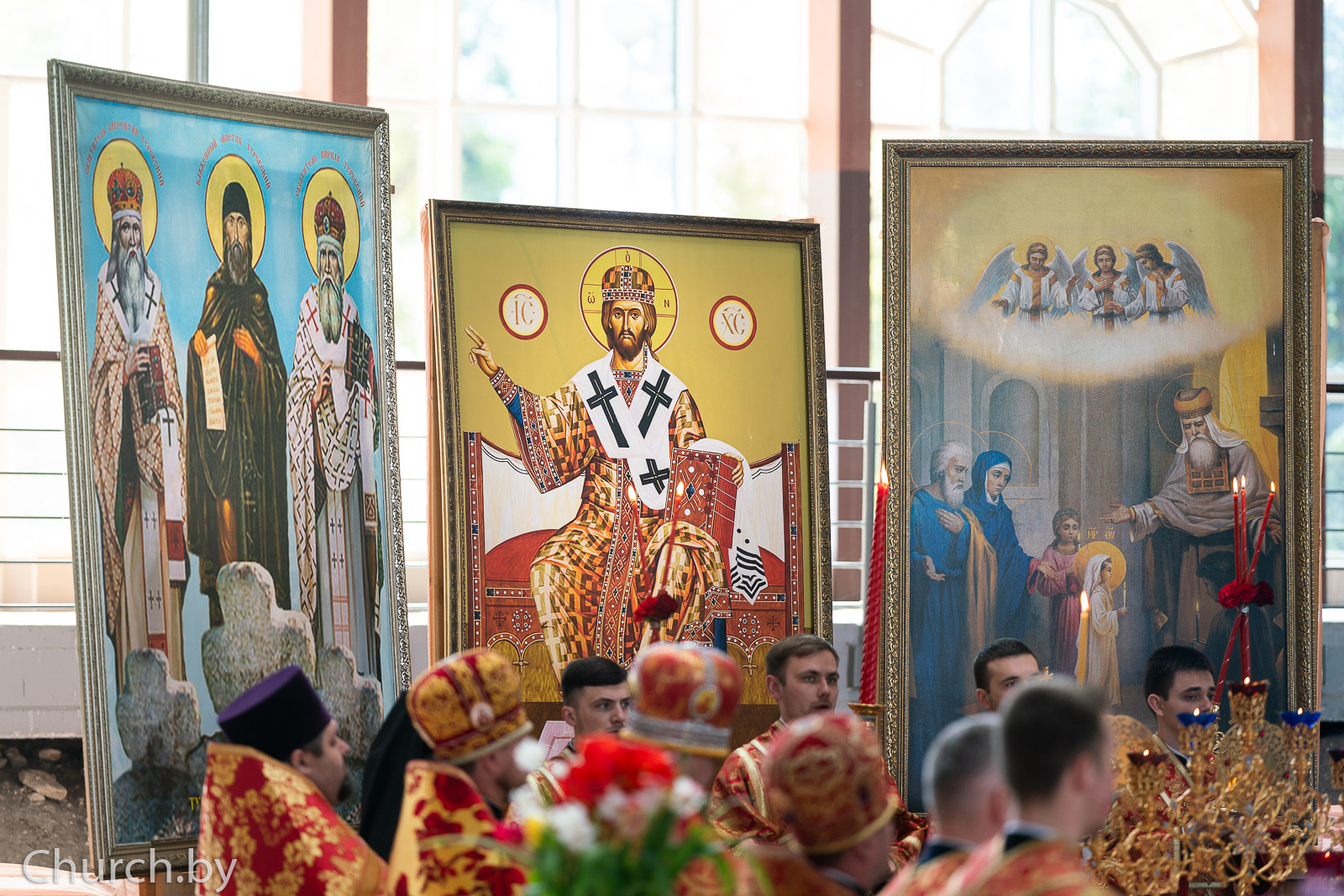 Архипастырям сослужили: ответственный секретарь Управления делами Белорусской Православной Церкви протоиерей Андрей Волков и духовенство Белорусского Экзархата.