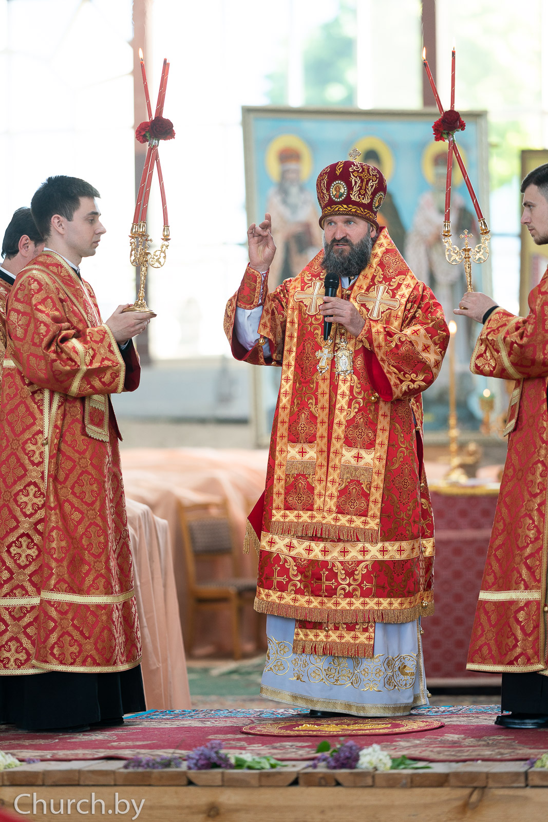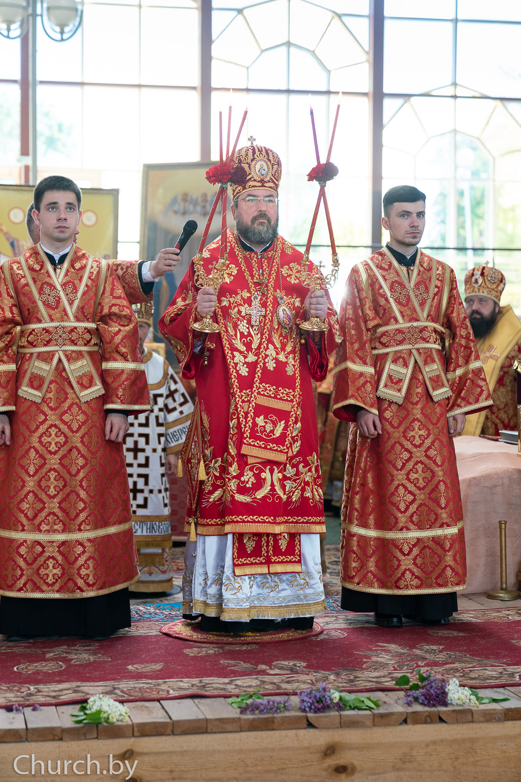 За Литургией Митрополиту Вениамину сослужили: архиепископ Могилевский и Мстиславский Софроний; архиепископ Гомельский и Жлобинский Стефан; епископ Бобруйский и Быховский Серафим; епископ Туровский и Мозырский Леонид; епископ Светлогорский Амвросий, викарий Гомельской епархии; епископ Пинский и Лунинецкий Георгий и епископ Друцкий Евсевий, викарий Витебской епархии.