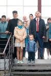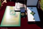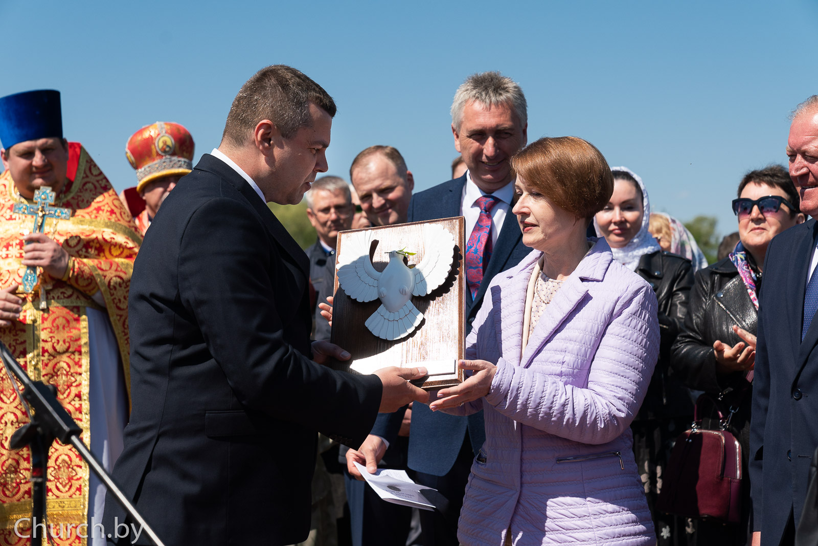 Далее был оглашен приветственный адрес от имени Житковичского райисполкома и райсовета депутатов, а также по случаю объявленного в нашей стране Года мира и созидания вручены памятные сувениры Митрополиту Вениамину, епископу Леониду и Зенкевич Екатерине Анатольевне.
