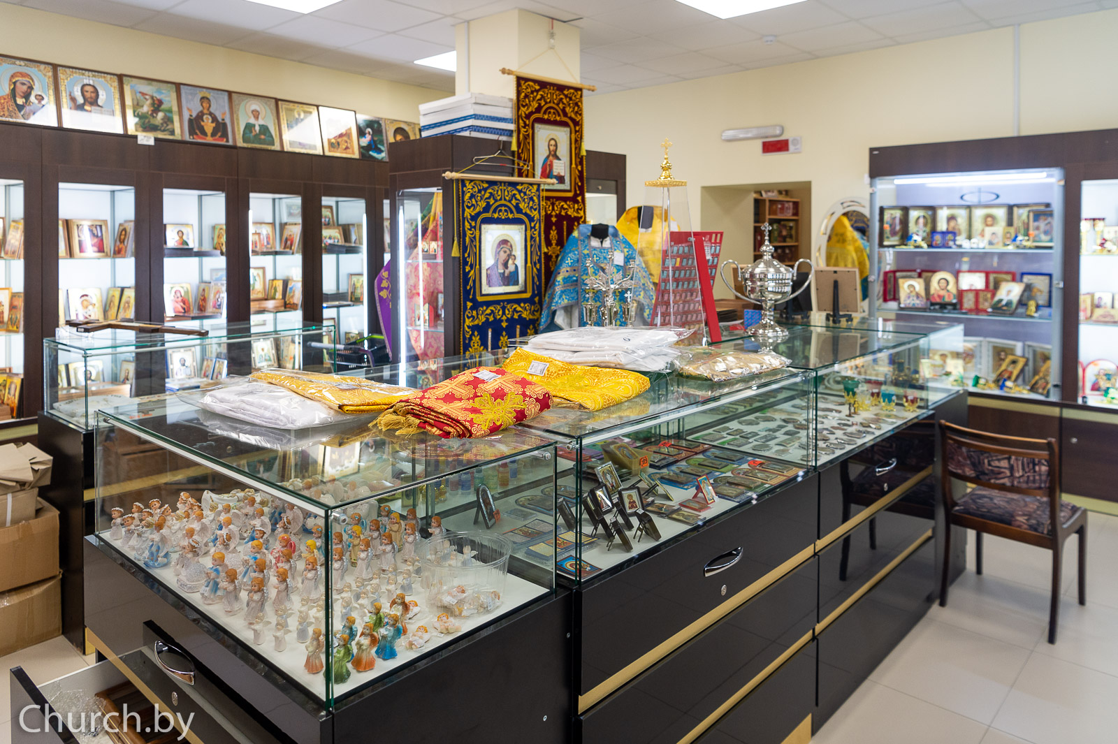 Посетителям лавки предлагается широкий ассортимент товаров: предметы церковного обихода, утварь для богослужения, пошивочная продукция, свечи, ладан, иконы.