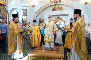 11 августа, в Неделю 8-ю по Пятидесятнице, день памяти преподобной Манефы Гомельской, митрополит Минский и Заславский Павел, Патриарший Экзарх всея Беларуси, совершил Божественную литургию в Петро-Павловском кафедральном соборе города Гомеля.
