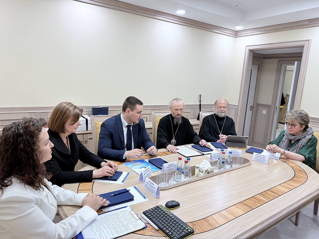 В рамках открытия ресурсного центра состоялась рабочая встреча, в ходе которой были обсуждены основные направления сотрудничества образовательной сферы с Белорусской Православной Церковью.