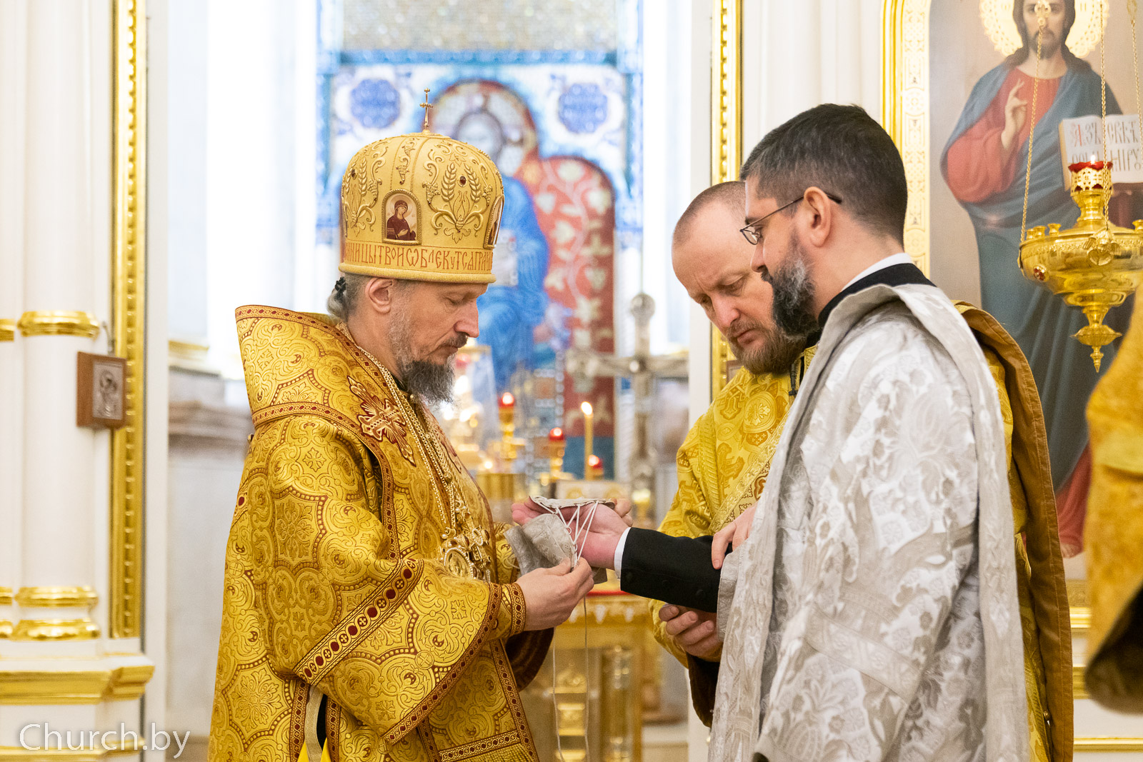 За богослужением Патриарший Экзарх совершил хиротесию в иподиакона, а затем диаконскую хиротонию выпускника Московской духовной академии Ростислава Байдакова. По заамвонной молитве была совершена заупокойная лития о приснопоминаемом Митрополите Филарете (Вахромееве), первом Патриаршем Экзархе всея Беларуси.