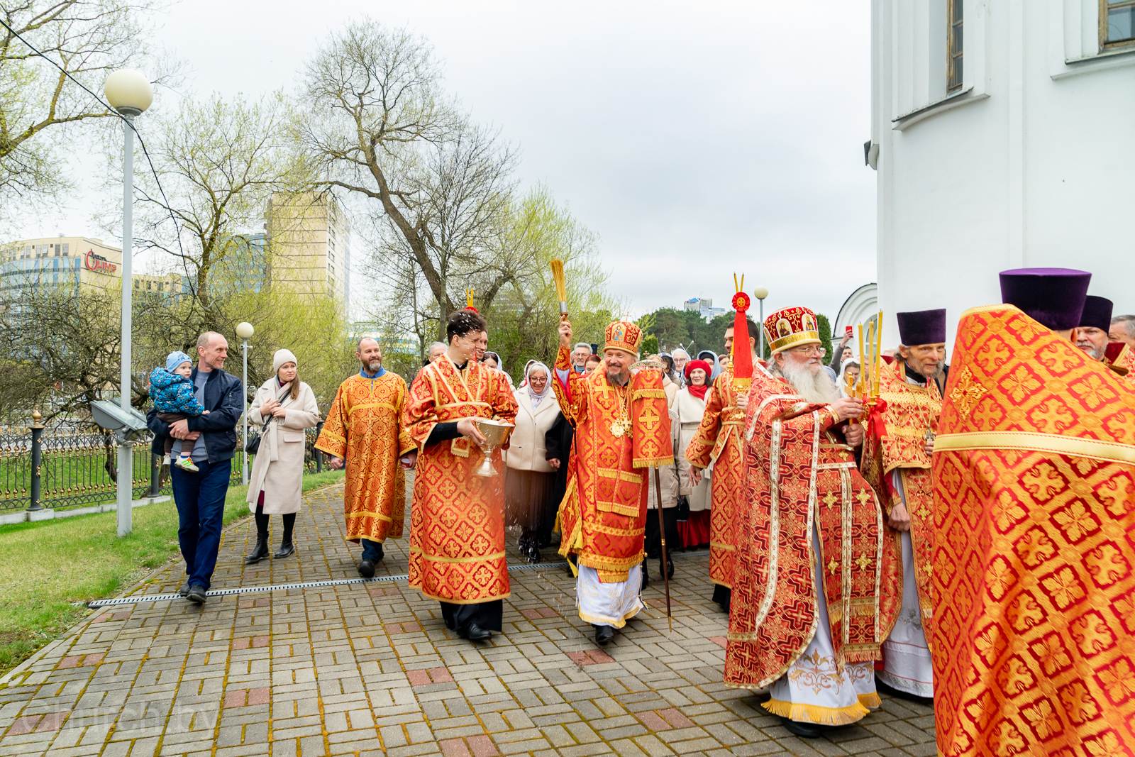 В ночь на 12 апреля 2026 года, в праздник Светлого Христова Воскресения, Митрополит Минский и Заславский Вениамин, Патриарший Экзарх всея Беларуси, возглавил крестный ход, праздничную Пасхальную утреню и Божественную литургию святителя Иоанна Златоуста в Свято-Духовом кафедральном соборе города Минска.