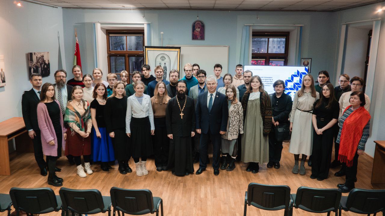 В ходе общения со студентами были затронуты темы, касающиеся взаимодействия религиозных и светских организаций, их роли в современном мире и общественном пространстве Республики Беларусь.