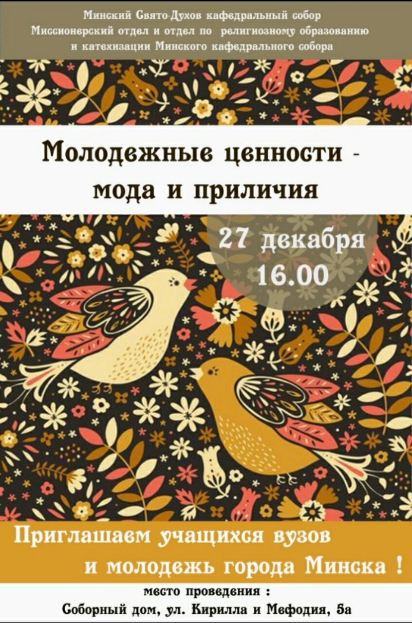27 декабря в 16.00 состоится молодежная встреча-дискуссия «Молодежные ценности-мода и приличия!».