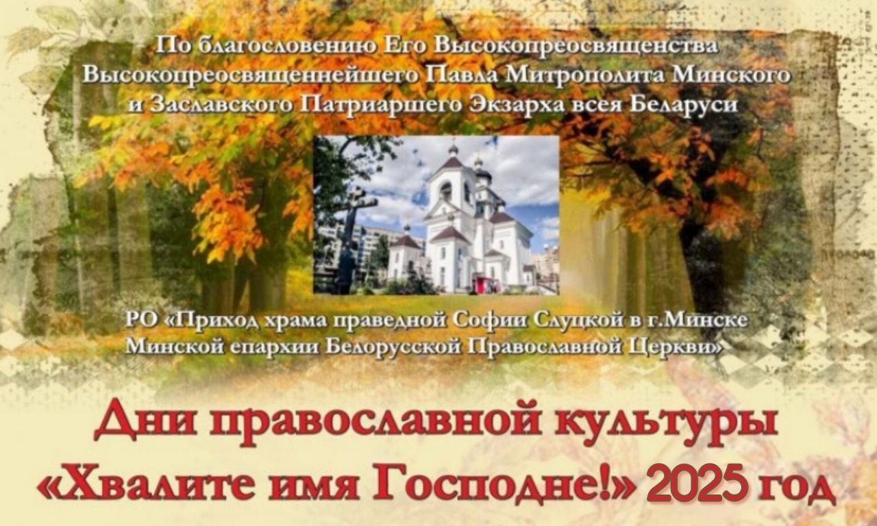 05 октября 2025По благословению Патриаршего Экзарха всея Беларуси в городе Минске с 30 сентября по 4 ноября 2025 года проходят Дни православной культуры «Хвалите имя Господне!». Организатор мероприятия — приход столичного храма в честь праведной Софии Слуцкой.