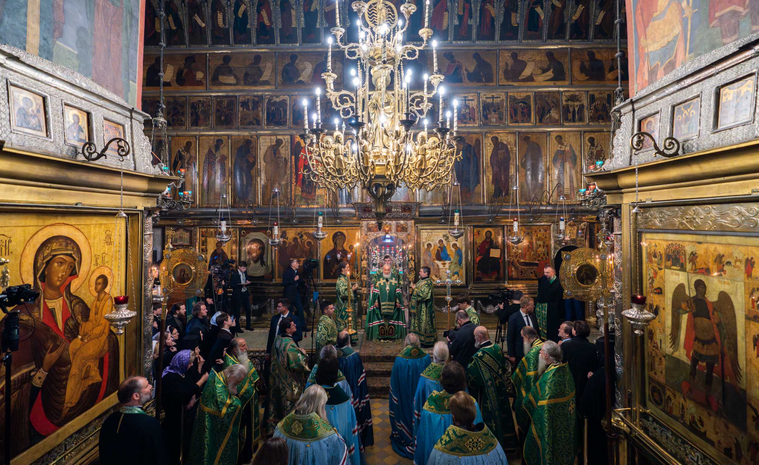 Богослужебные песнопения исполнил хор Троице-Сергиевой лавры под управлением иеромонаха Нестора (Волкова).