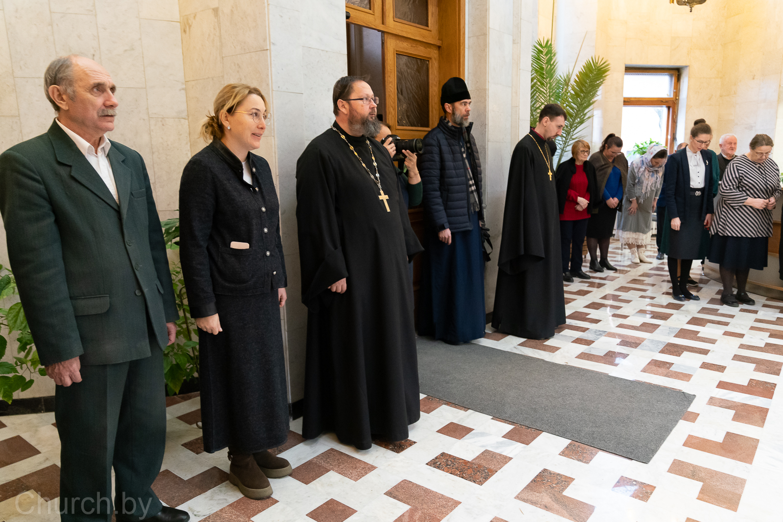 Его Высокопреосвященству сослужили секретарь Минской епархии протоиерей Андрей Волков и председатель Наградной комиссии Белорусского Экзархата иерей Дионисий Ковалев.