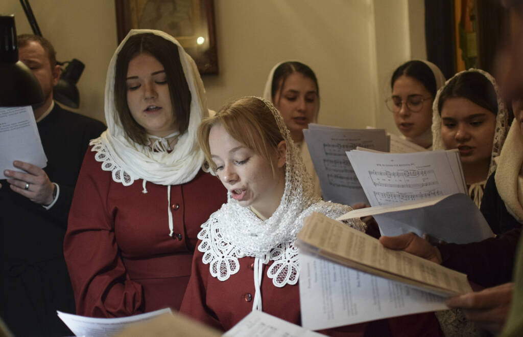 Богослужебные песнопения исполнил студенческий хор учащихся дневного отделения под управлением Вероники Карасенко.