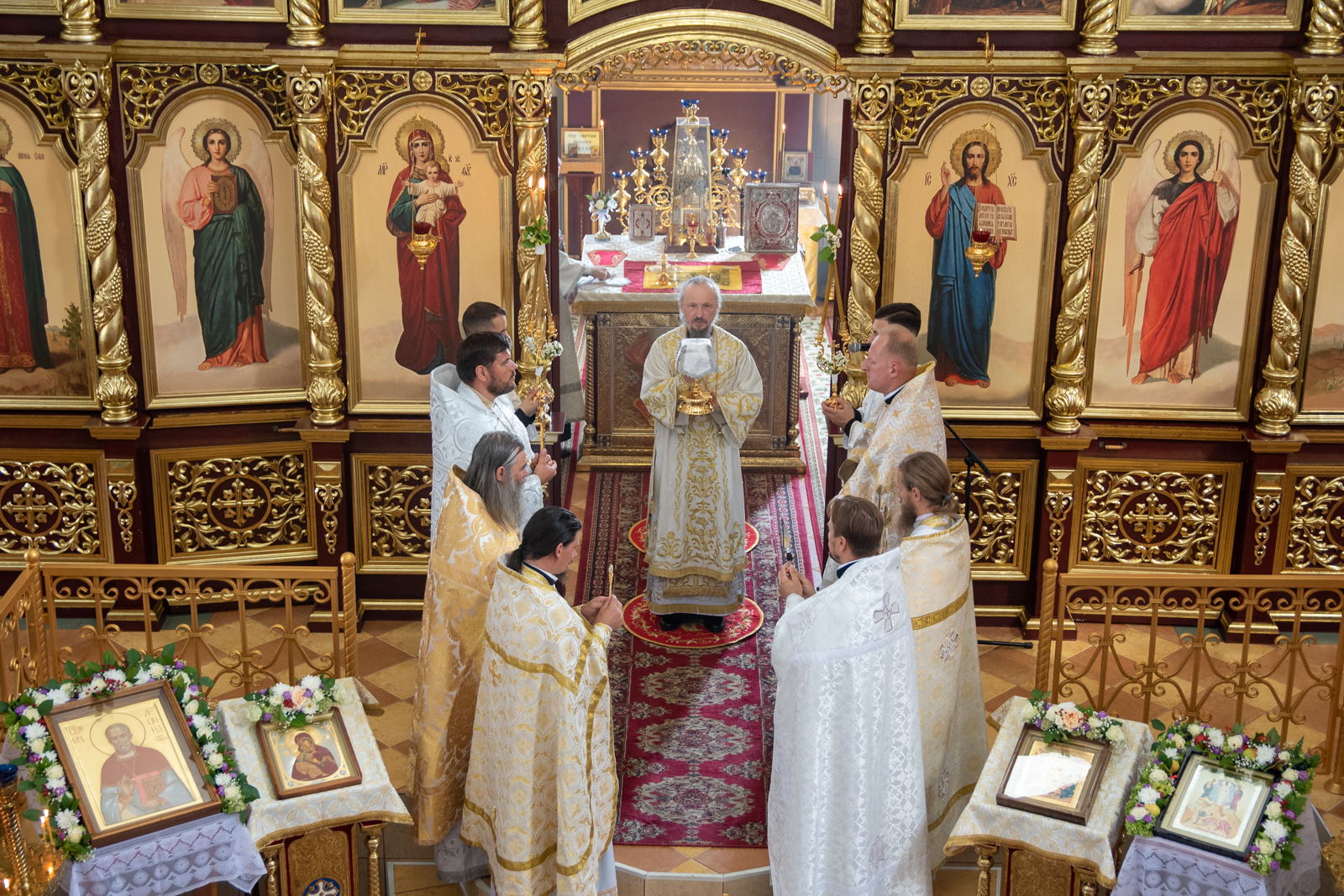Далее были совершены славления празднику Преображения Господня и священномученику Леониду Бирюковичу.