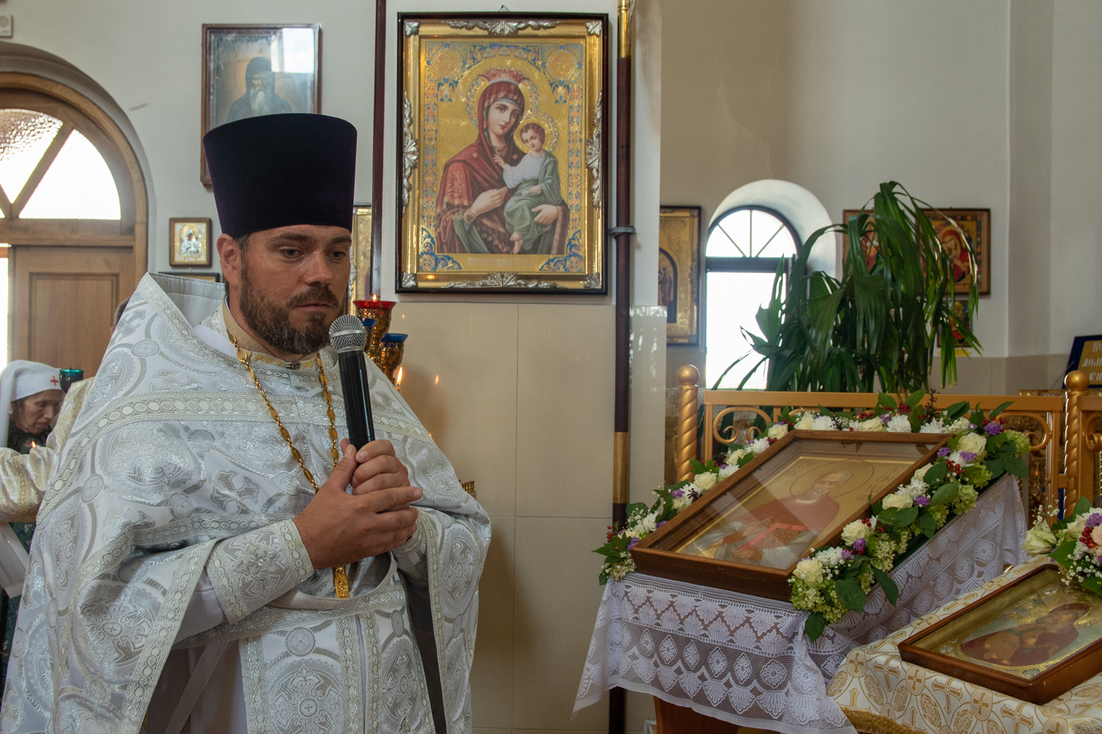 В своём слове протоиерей Илья Гончарук поблагодарил Митрополита Вениамина за совместную молитву и архипастырский визит и преподнёс владыке на память образ святителя Митрофана, епископа Воронежского, обретение мощей которого празднуется 20 августа.