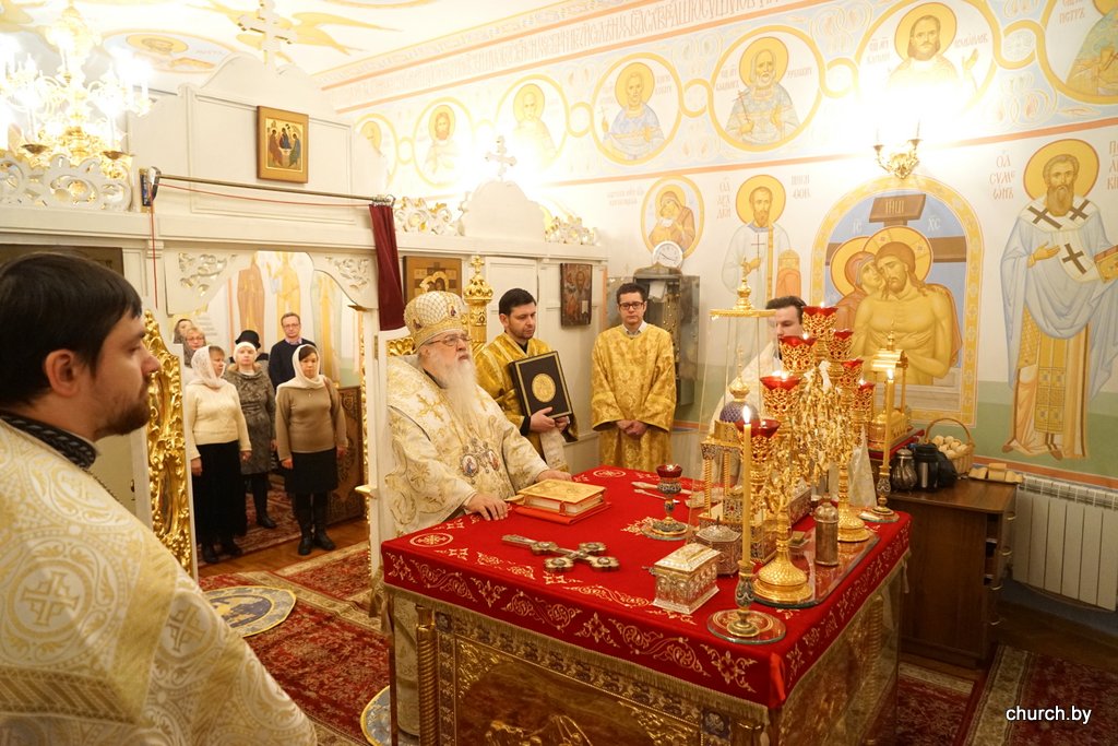 В неделю 35-ю по Пятидесятнице митрополит Филарет возглавил Литургию в домовом храме Минского епархиального управления