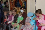 Всем присутствующим были розданы детские молитвословы и сладкие подарки.