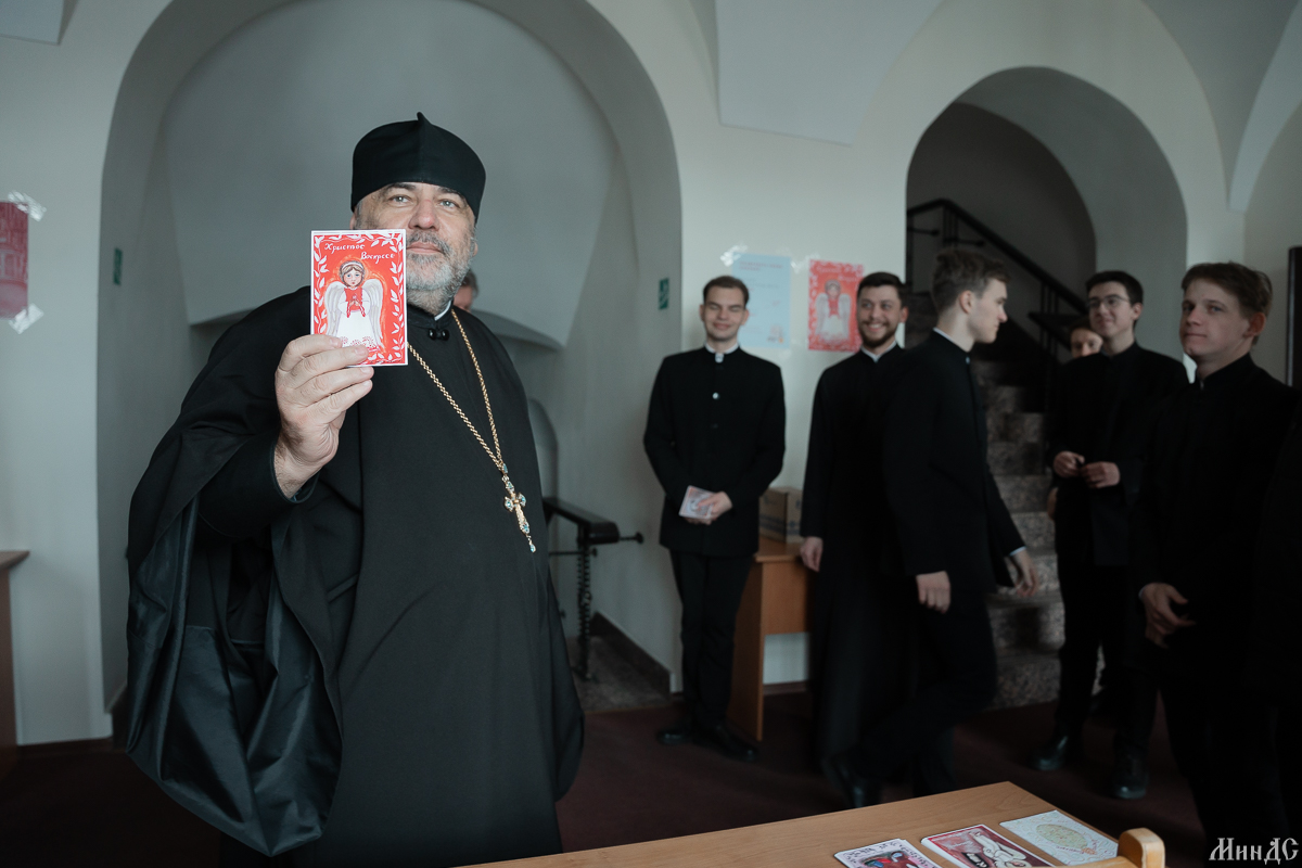 В преддверии праздника Светлого Христова Воскресения по благословению ректора Минской духовной семинарии протоиерея Виктора Василевича прошла ежегодная акция «Пасхальная открытка», которая традиционно объединяет не только студентов семинарии и учащихся различных учебных заведений Беларуси, но и всех желающих порадовать своих родных и близких. Изображения для открыток готовят преподаватели и студенты Отделения церковных искусств.
